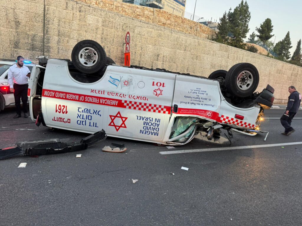 בתאונה התהפכה ניידת אמבולנס של ארגון מגן דוד אדום.