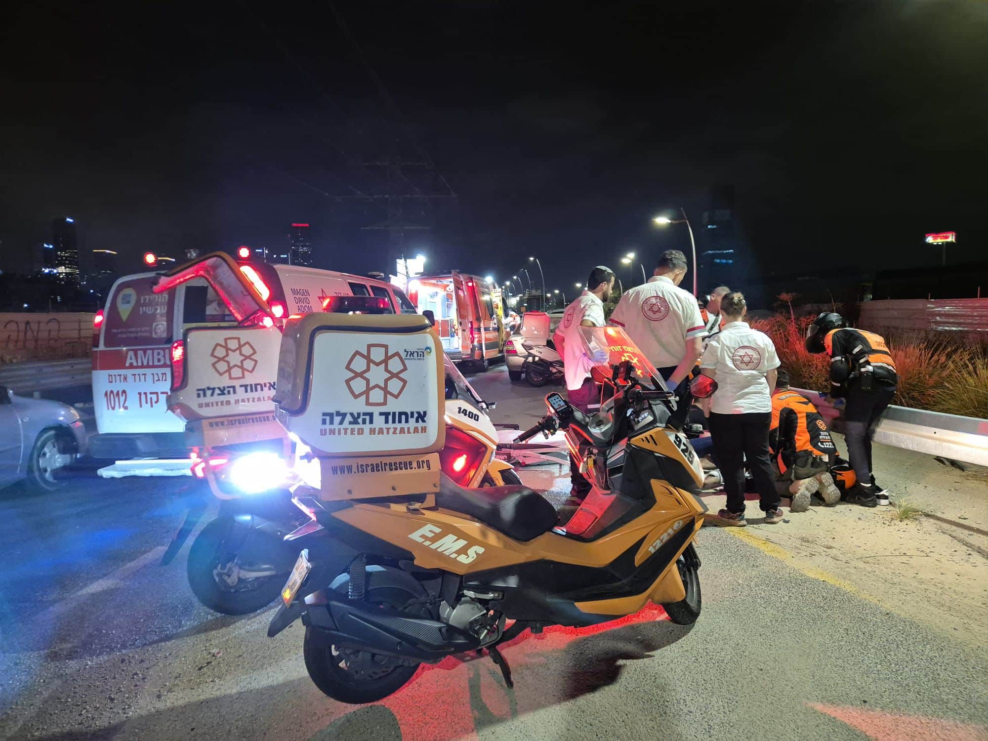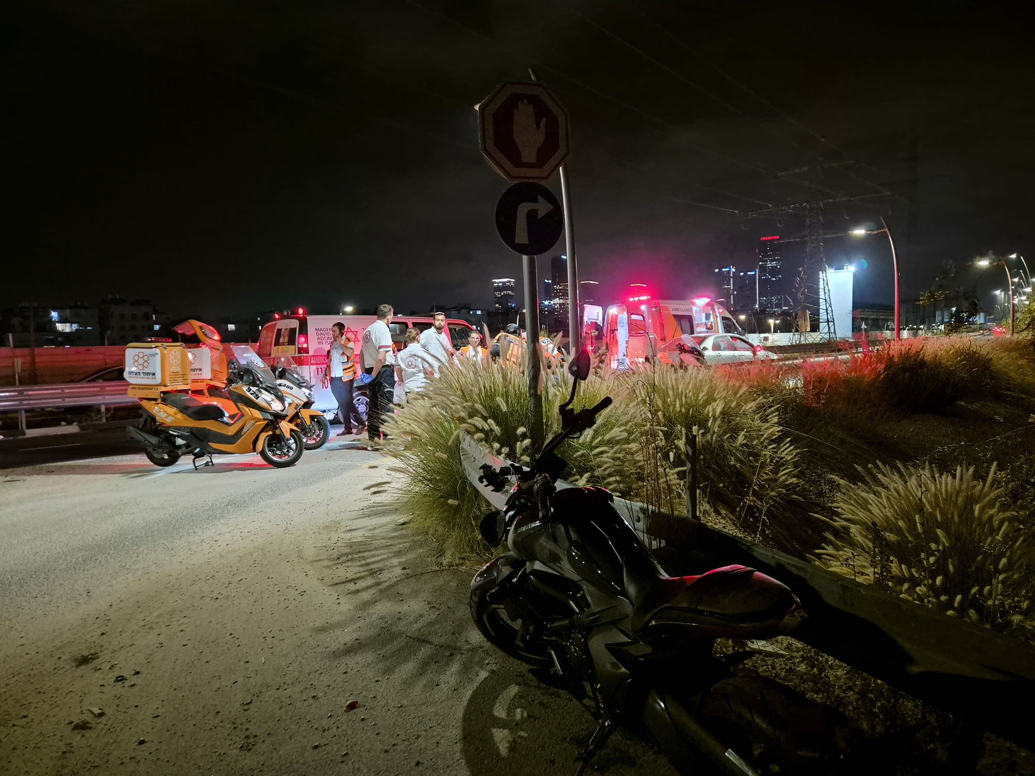 "לדברי עוברי אורח רוכב האופנוע החליק ונחבל בראשו ובגפיו. לאחר הסיוע הראשוני שהענקנו לו בזירה הוא פונה באמבולנס איחוד הצלה לחדר הטראומה בבית חולים בלינסון כשמצבו בשלב זה מוגדר בינוני".