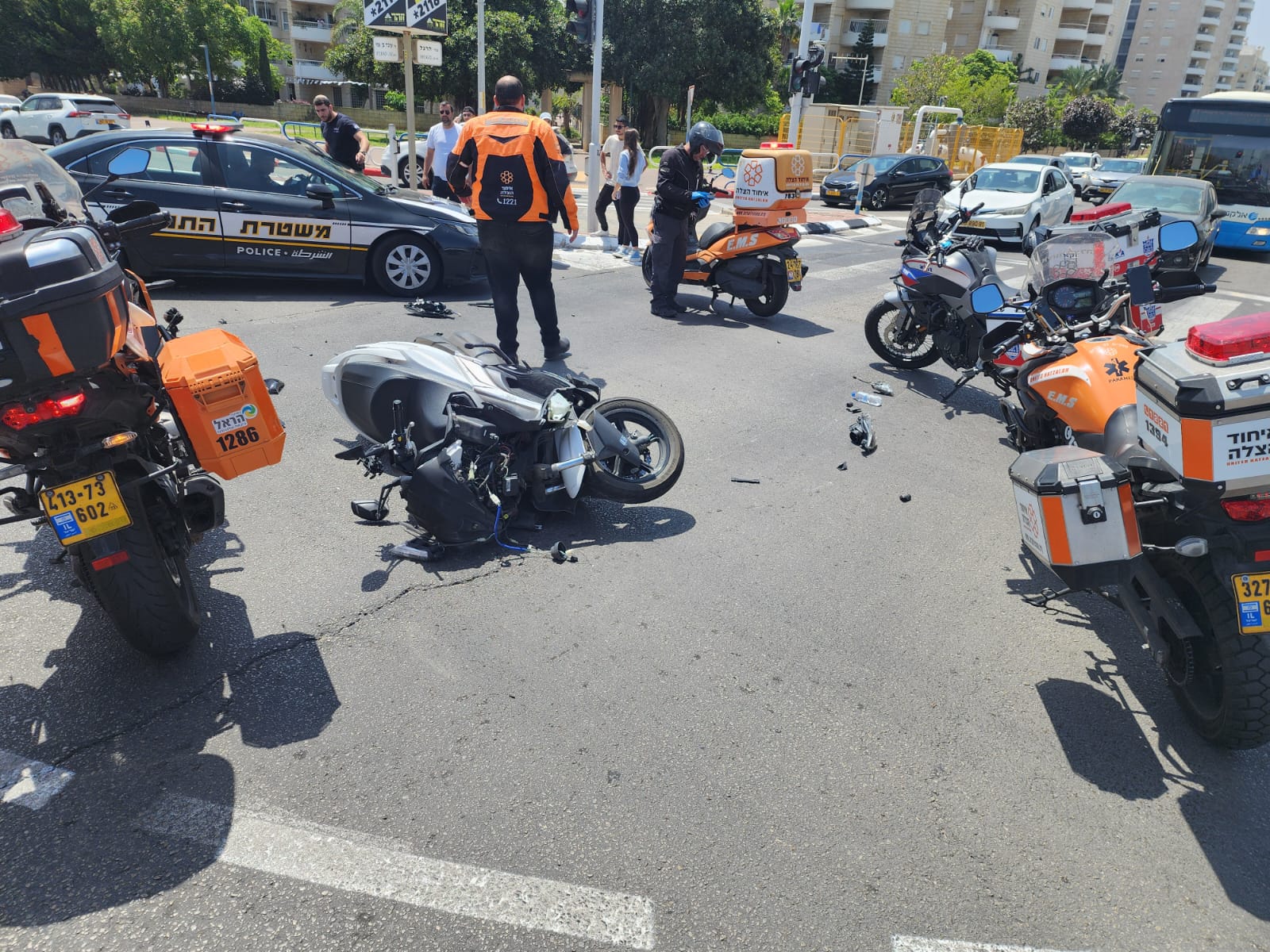 צוותי הרפואה של איחוד הצלה העניקו טיפול רפואי לרוכב קטנוע בן 19 בזירת תאונה עצמית.