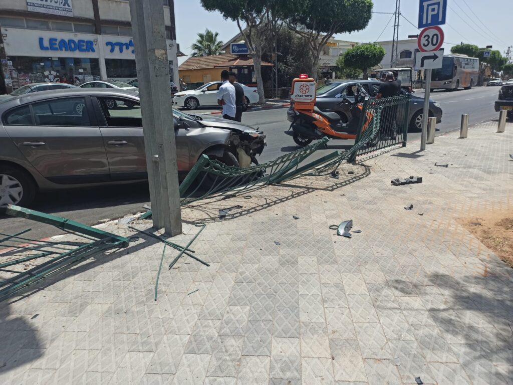 צוותי הרפואה של איחוד הצלה מעניקים סיוע ראשוני לנהג רכב כבן 50 שנפצע קל כתוצאה מהתנגשות רכבו בגדר ברחוב ירושלים.