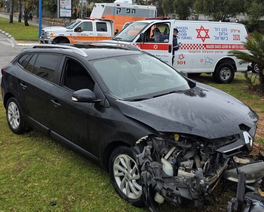תאונה עצמית ביבנה: נהג רכב נפצע ברחוב ז'בוטינסקי