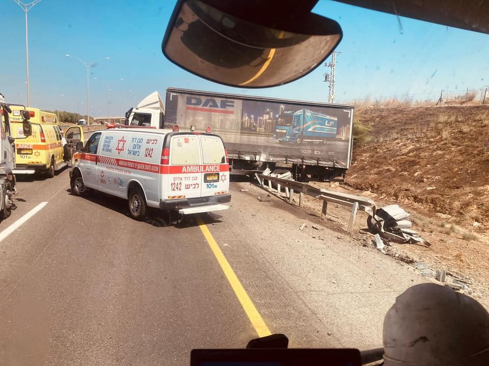 במוקד 101 של מד"א במרחב איילון על משאית שהתנגשה במעקה בטיחות בכביש 6 סמוך למחלף נשרים.