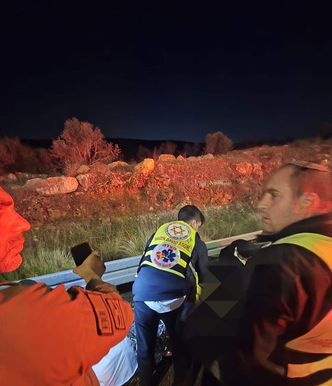 פצוע בינוני: גבר כבן 45, שהיה לכוד ברכבו וחולץ על ידי לוחמי האש כשהוא בהכרה.