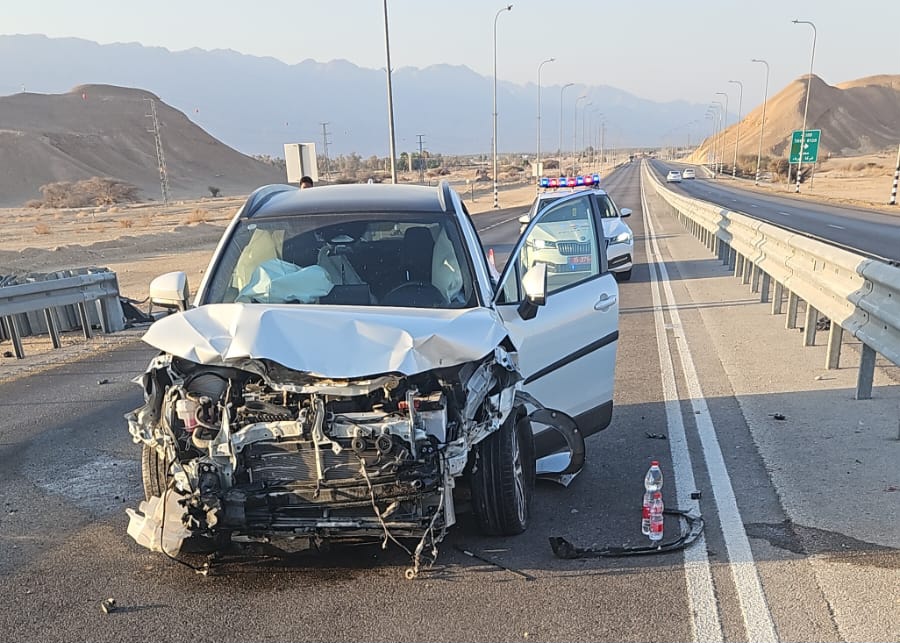 ממד"א נמסר: בשעה 06:25 התקבל דיווח במוקד 101 של מד"א במרחב נגב על רכב שהתנגש בגדר הפרדה בכביש 90 סמוך למחלף יטבתה. חובשים ופראמדיקים של מד"א מעניקים טיפול רפואי ומפנים לבי"ח יוספטל, גבר בן 47 במצב בינוני עם חבלות בבטן ופנים