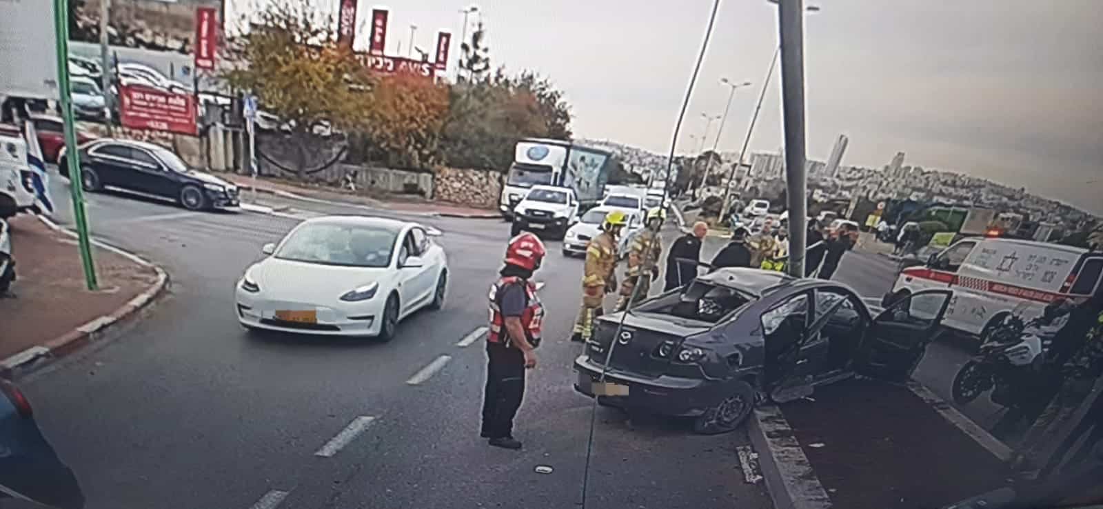 סמוך לשעה 15:00 התקבל דיווח במוקד 102 של כב"ה מחוז ירושלים על תאונת דרכים עם לכוד בתוך רכב פרטי שהתנגש בעמוד חשמל בצומת משה ברעם שבשכונת תלפיות.