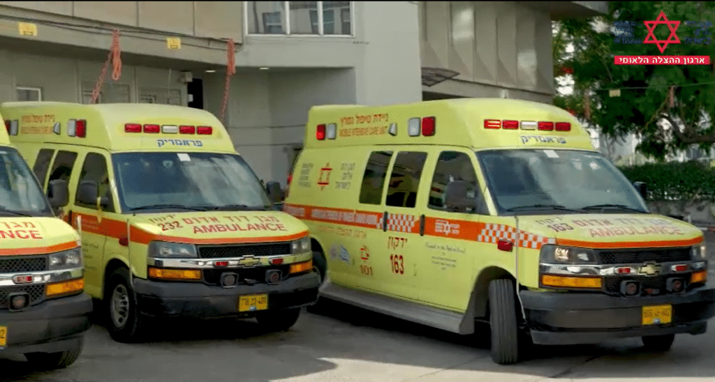 חובשים ופראמדיקים של מד"א העניקו טיפול רפואי ופינו לבי"ח שיבא בתל השומר.