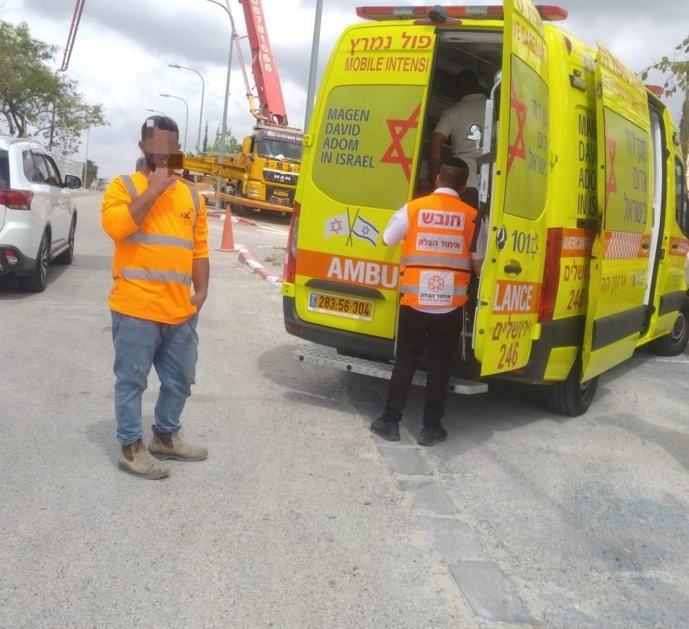 חובשים מיחידת "כח הצלה" של איחוד הצלה, שהגיעו ראשונים לזירה, העניקו לפצוע טיפול רפואי ראשוני מציל חיים. הצוות הרפואי שכלל את יעקב יונגרייז, יאיר פרוש ודוד פרידליס, סיפר על רגעי הטיפול: "נמסר לנו בזירה כי הפועל נפל מפיגום בגובה של כ-4 מטרים במהלך עבודתו, וכתוצאה מכך סבל מפגיעות בראשו ובגפיו. הענקנו לו סיוע ראשוני בשטח כדי לייצב את מצבו".