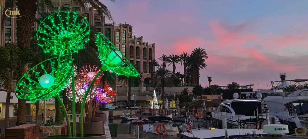 טיילת אילת הסובבת את המרינה, התחדשה ב-15 מיצבי תאורה ייחודים, ביניהם פרחים, דולפינים, לבבות, עמדות בר מוארות ועוד.