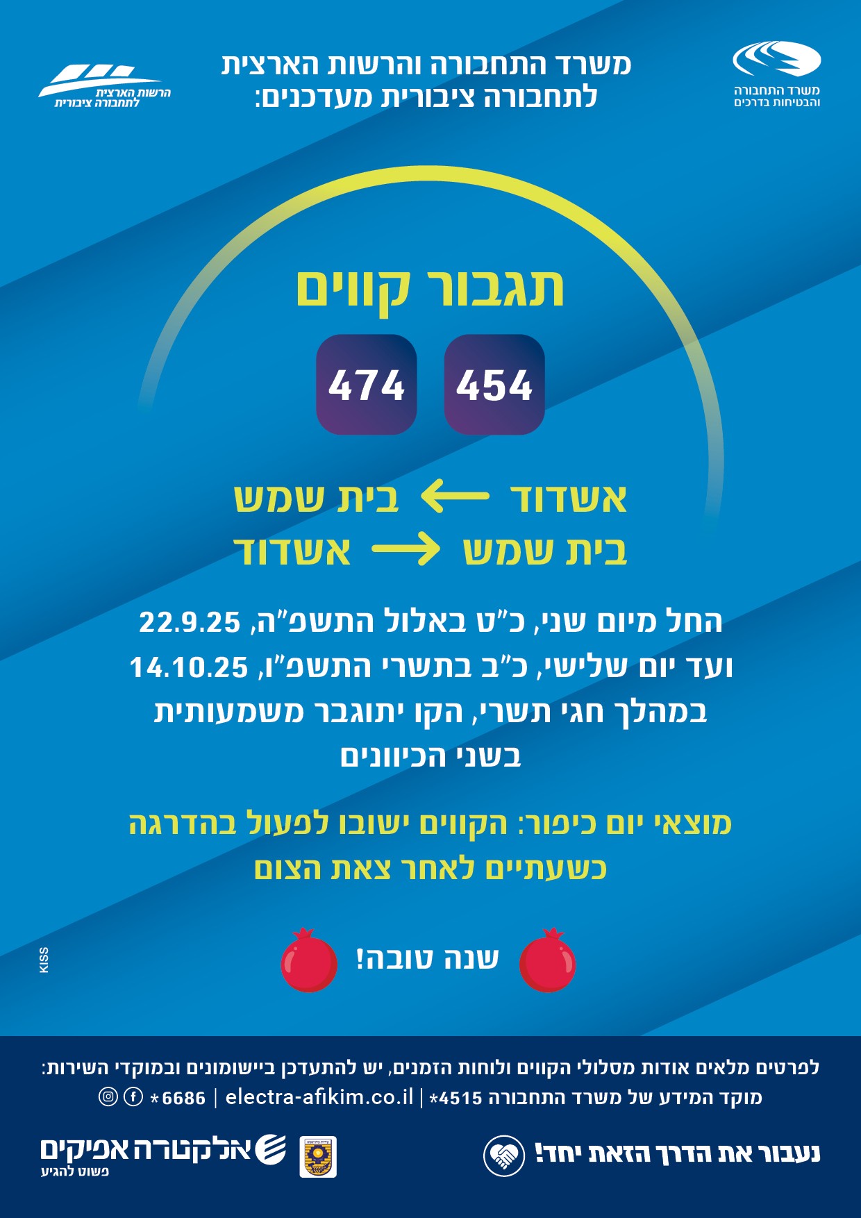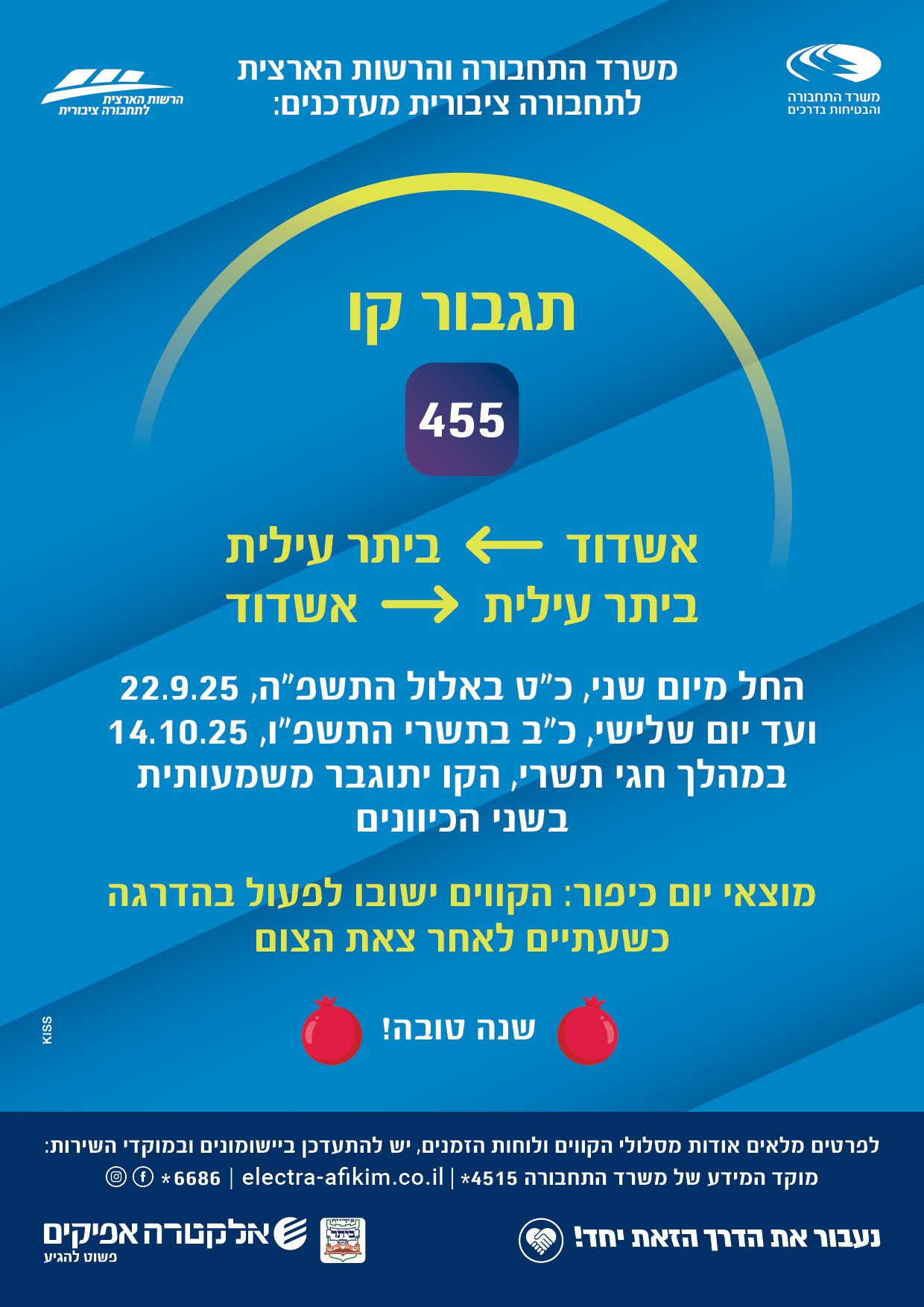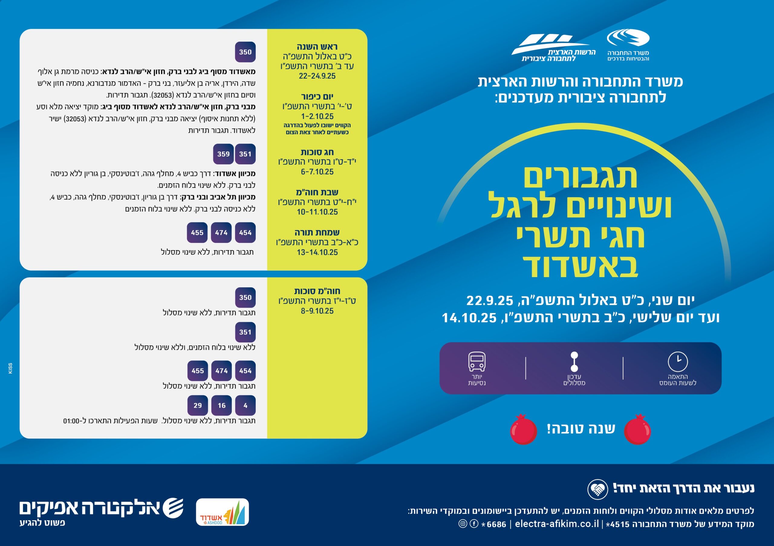 לקראת חגי תשרי, אלקטרה אפיקים מתגברת את שירותי התחבורה הציבורית כדי לספק מענה מיטבי לתושבי הרשות.