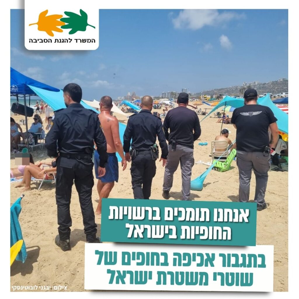 המשרד להגנת הסביבה תומך ברשויות החופיות בישראל: מממן בהיקף של כמיליון שקל תגבור של שוטרי משטרת ישראל, שילוו בחודשי הקיץ את פקחי הרשויות בפעולות פיקוח ואכיפה לשמירת ניקיון החופים