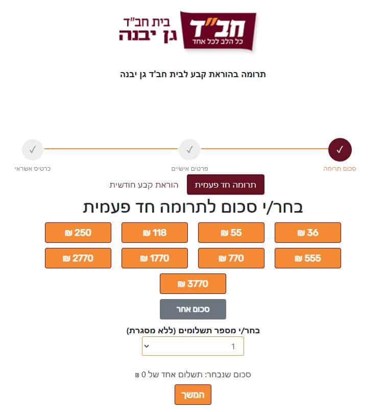 תושבים המעוניינים לסייע ברכישת סלי המזון מוזמנים לתרום דרך ביט / פייבוקס ישירות לרב שניאור – 0523603219, או בהעברה בנקאית: מס' חשבון – 172077 , בנק מזרחי 20, סניף 450 – ק. מלאכי, ע"ש בית חב"ד גן יבנה. ניתן לתרום בכרטיס אשראי בלחיצה על הקישור – (או על התמונה למטה). התרומות מוכרות לפי סעיף 46.