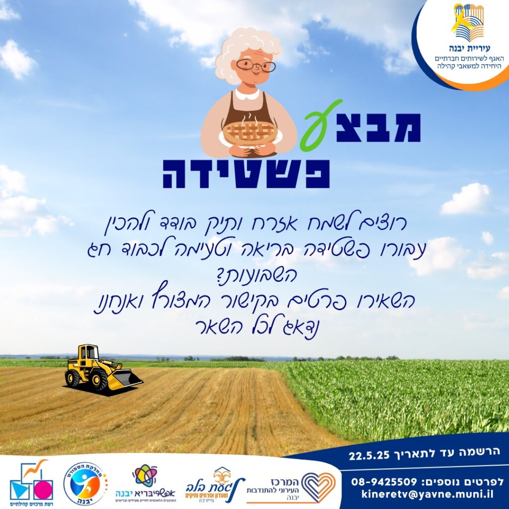תושבי יבנה, רוצים לשמח אזרח ותיק בודד ולהכין עבורו פשטידה בריאה וטעימה לכבוד חג השבועות?