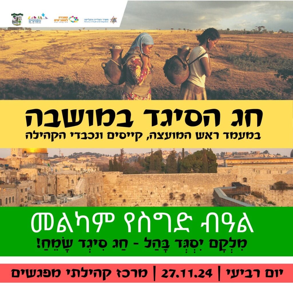 מועצה מקומית מזכרת בתיה ומרכז קהילתי מפגשים מזמינים את התושבים לחגיגת סיגד קהילתית ושמחה במעמד ראש המועצה, קייסים ונכבדי הקהילה. האירוע בתמיכת משרד העלייה והקליטה.
