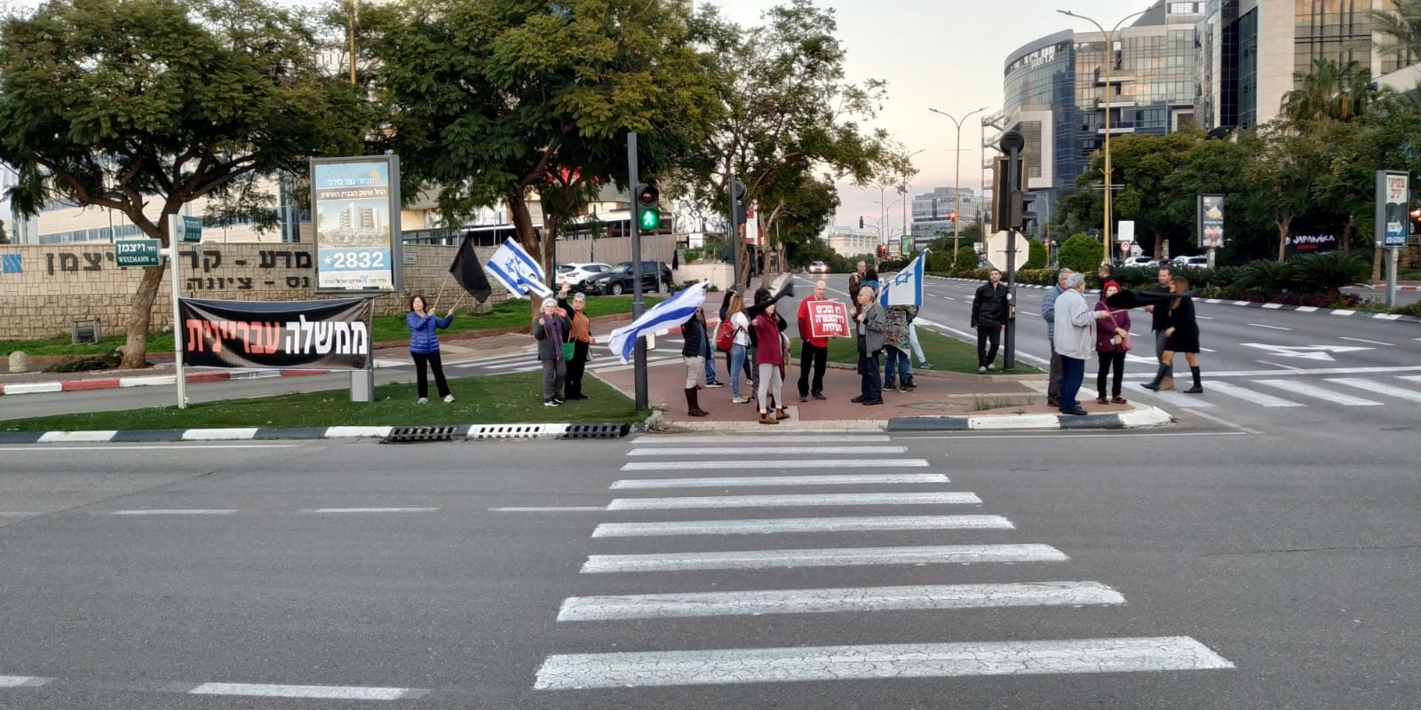 תושבות ותושבים מרחובות ונס ציונה להפגנה בצומת פארק המדע, במחאה על אופיה וצעדיה הראשונים של הממשלה.