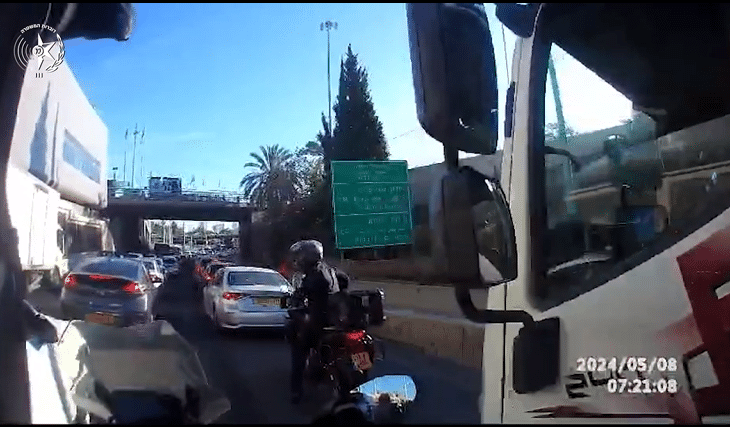 שוטרי סיירת האופנועים של אגף התנועה יחד עם שוטרי מחוז ת"א איתרו את המשאית החשודה כגנובה נוסעת בכביש איילון ועצרו את הנהג תושב השטחים