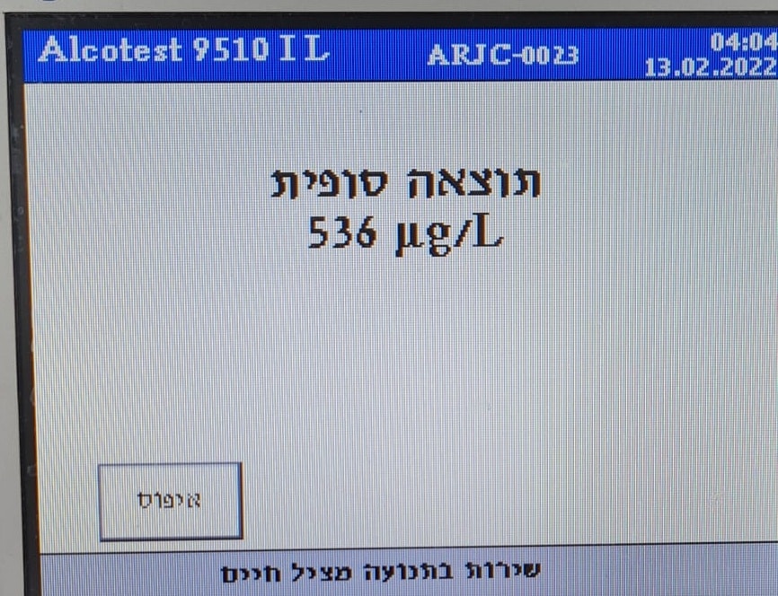 השוטרים שהיו במהלך סיור בשעות הלילה בעיר, העלו את החשד כלפי אחד הנהגים שנסע בכביש, ועצרו אותו בצד הדרך לבדיקה, שבמהלכה התחזק חשדם כי הוא נוהג תחת השפעת אלכוהול. בבדיקה שערכו לו במכשיר 'הינשוף', עלתה תוצאה של 536 מ"ק אלכוהול, כמות הגבוה מהמותר בחוק, המשפיעה באופן ישיר על נהיגתו ושיקול דעתו של החשוד.