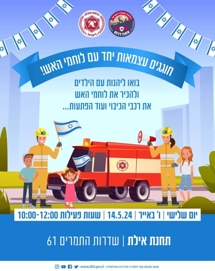 מפקד התחנה ולוחמי האש מזמינים את כלל הציבור להגיע לתחנה עם הילדים ולהתרשם מיכולות לוחמי האש.
