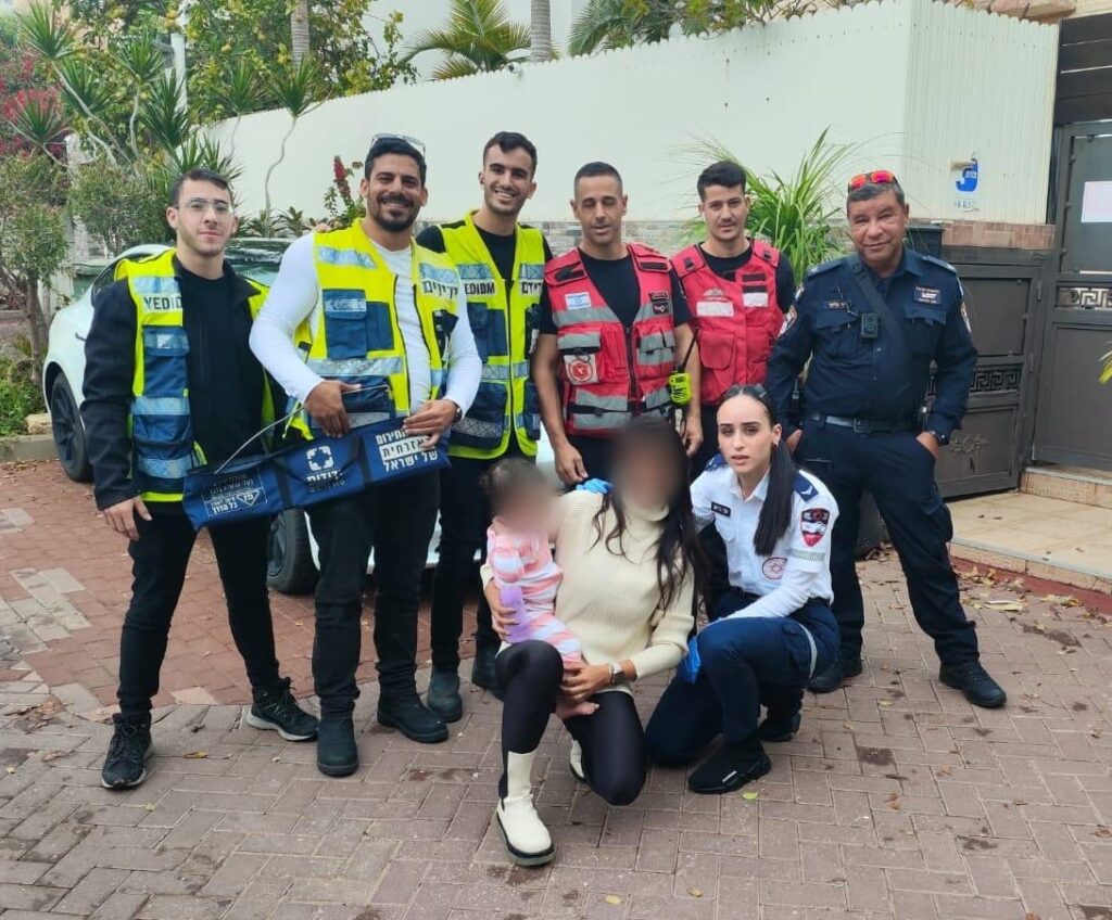 גדי ברק – מוקדן מתלמד מרכז שענה לשיחה במוקד, לקח פרטים והזעיק סיוע לכתובת. שמואל לסרי – מנהל מרחב לכיש, יחד עם מאיר אבוקרט ומשה אושרי, מתנדבי סניף אשדוד, נענו לקריאה והגיעו במהירות למקום. באמצעות הציוד הייעודי שברשותם חילצו המתנדבים את התינוקת בשלום, ללא גרימת נזק לרכב.