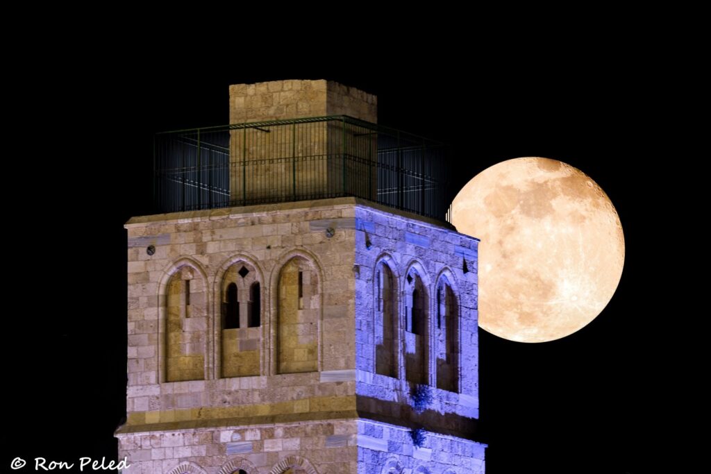 התמונה המופיעה כאן צולמו על ידי רון פלד מנהל התיירות ברמלה, שהצליח לקלוט בעדשה את הירח האסטרונומי, ממש ליד המגדל הלבן ואפשר לראות את הירח במלוא הדרו.