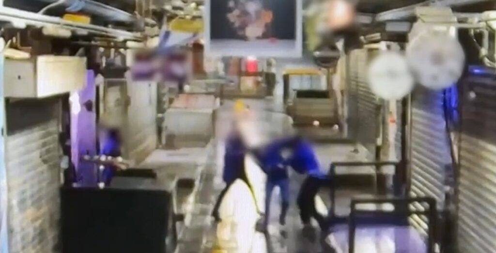 תיעוד קשה לצפייה: במשך דַּקּוֹתַיִם כשהוא מוטל על הרצפה, היכו בעל עסק ואחד מעובדיו בשוק מחנה יהודה שבירושלים באכזריות אדם באגרופים, בעיטות וחבטות באמצעות אַלָּה עד זוב דם. כשסיימו, סגרו את העסק ועזבו את המקום כשהקורבן חבול.