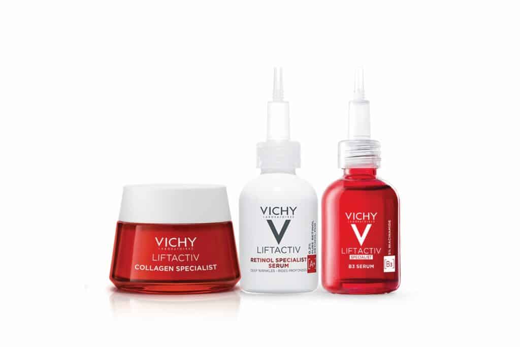 ליפטאקטיב סרום רטינול ליפטאקטיב ספשייליסט המטפל במראה קמטים עמוקים יותר. ובהפחתת מראה קמטים עמוקים, ומסייע להתחדשות תאי העור. קרם יום ליפטאקטיב קולגן ספיישליסט – קרם המסייע בתיקון מראה סימני הגיל הנגרמים כתוצאה מאיבוד קולגן בעור. העור נראה צעיר יותר, מוצק יותר וקורן יותר. פורמולה עוצמתית המשלבת מרכיבים פעילים: פפטידים עם נגזרת של ויטמין C לטיפול ממוקד בסימני ההזדקנות של העור. גוון העור נראה אחיד יותר וסימני פיגמנטציה קלים פחות נראים לעין. ליפטאקטיב קולגן ספיישליסט לילה – המסייע בטיפול בסימני הגיל, הנגרמים כתוצאה מאיבוד קולגן. מסייע בהפחתת מראה הקמטים, ממצק את העור ומעניק לו מראה אחיד וקורן. בלילה העור אינו מתגונן מפני נזקים ופנוי לשיקום ובנייה מחדש, לכן ישנה חשיבות רבה לשימוש בקרם ייעודי לשעות הלילה. ליפטאקטיב קולגן ספשליסט לילה, מחדש ומזין את העור. ליפטאקטיב ספשייליסט סרום B3– לטיפול בפיגמנטציה ומראה קמטים. מתקן כתמים כהים, מפחית קמטים ומאחד את גוון העור. עם התקדמות הגיל וחשיפה לגורמים סביבתיים, כגון: זיהום וקרני ,UV עלולים להופיע קמטוטים, כתמים כהים וגוון לא אחיד של העור. על פורמולה היפואלרגנית המכילה את המים הוולקניים של וישי המסייעים בחיזוק והרגעת העור. הסרום החדשני משלב רכיבים פעילים נגד פיגמנטציה.
