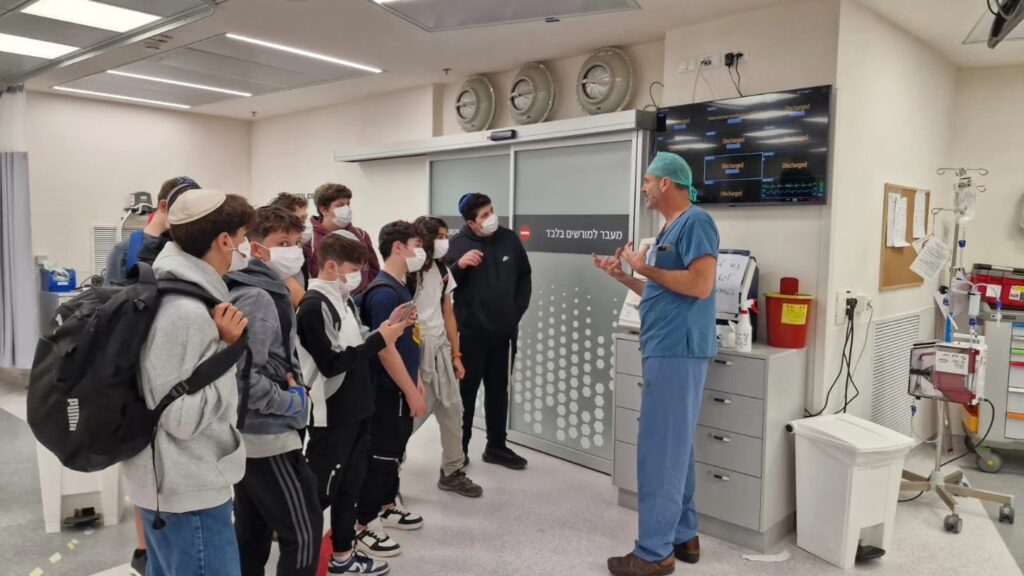 את היום פתחו התלמידים במפגש עם סגנית דוברת בית החולים, שלקחה אותם לסיור במבנים השונים ושיתפה בהסטוריה של המקום. משם, עברו לחוויות מעולם הרפואה; צפייה בניתוח קטרקט: רופא עיניים הראה להם מקרוב ניתוח קטרקט, והסביר את התהליך. הצלת חיים בחדר הטראומה; התלמידים פגשו רופא בעל התמחות נדירה, אחד מ-10 רופאים כאלה בארץ, שתיאר את תפקידו בהצלת חיים של חיילים ופצועים.