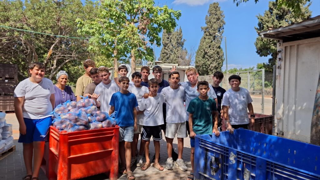 תלמידי אמית קבוצת יבנה פתחו שנה של חסד: אריזת סלי מזון לחגי תשרי