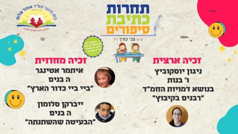 תלמידים מבתי הספר היסודיים בחינוך הממלכתי דתי בכל רחבי הארץ, השתתפו בתחרות הכתיבה במסגרתה זכו שלושה מתלמידי בית חינוך "אוהל שלום" בגדרה בפרסים על כתיבתם.