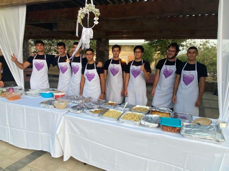 גם בחג השבועות האחרון עטפו התלמידים באהבה את שורדי השואה והזמינו אותם לארוחת חג לתפארת, שהופקה על ידי תלמידי שכבת י"א בהובלת רכזת השכבה והמחנכים. רחבת בית הספר הפכה לגן אירועים מרהיב ובכניסה קיבלו השורדים והשורדות, פרח לדש וכתר פרחים. הצוות סיפר בהתרגשות איך השורדים הובלו על ידי התלמידים למקומות הישיבה כלאחר כבוד. במסגרת המפגשים עם שורדי השואה הכינו התלמידים חוברת מתכונים לחג השבועות שאיגדה את מתכוני השורדים, נפגשו עימם בבתים והכינו ביחד את המאכלים מהם נהנו כולם בארוחת החג. בתום הערב קיבל כל שורד חוברת וסל עשיר מוצרי חלב תרומת מחלבת יוטבתה.
