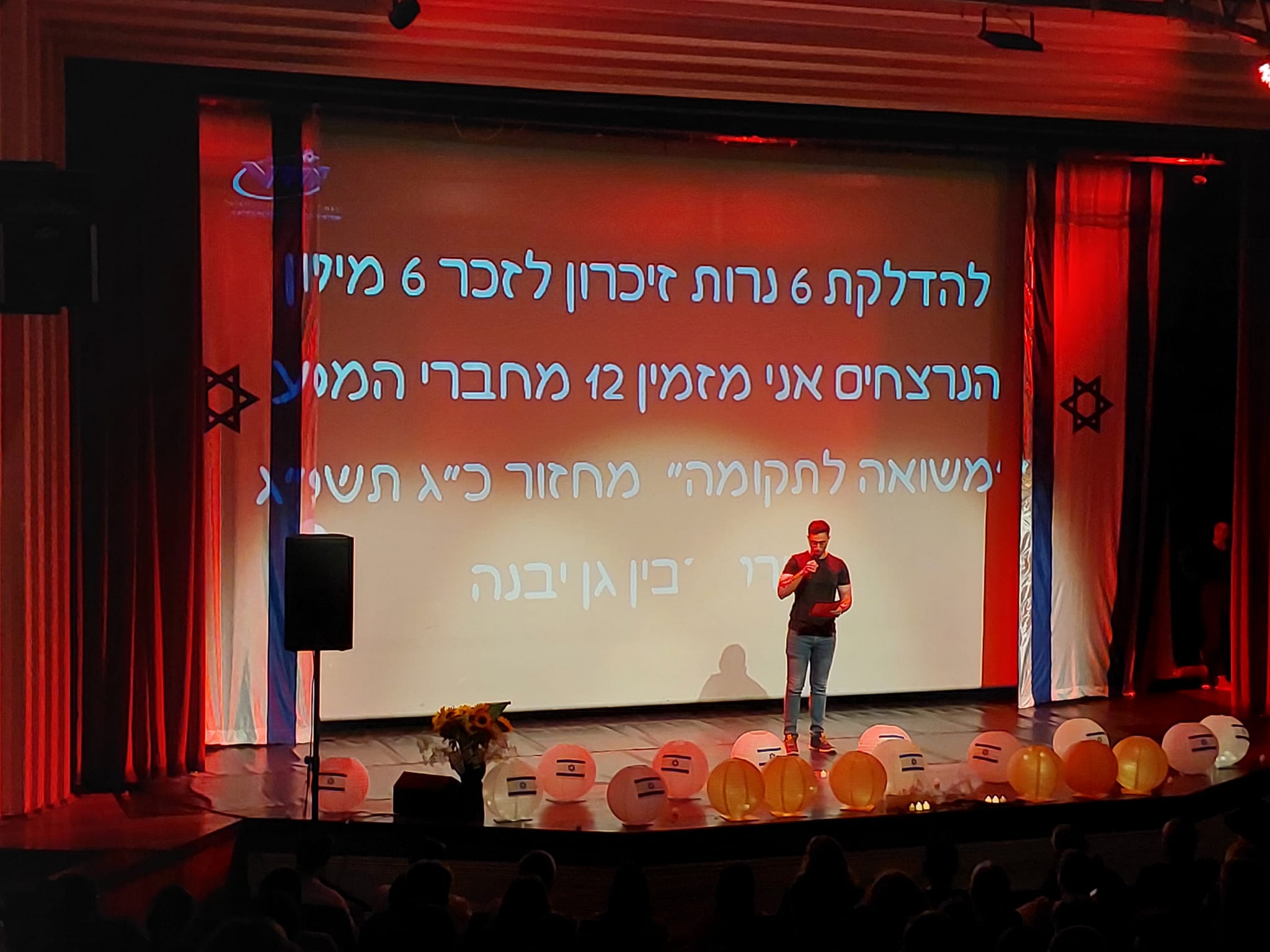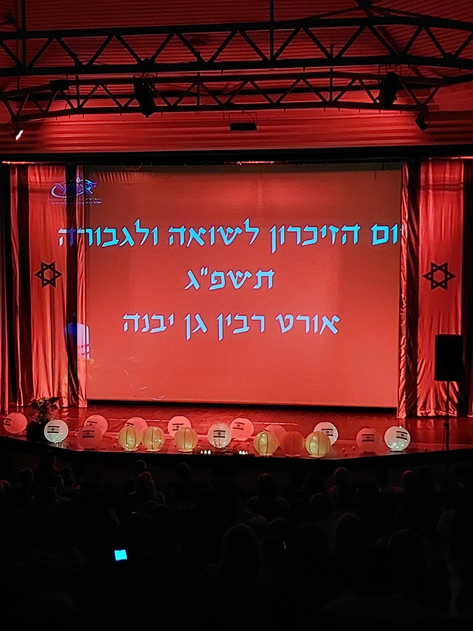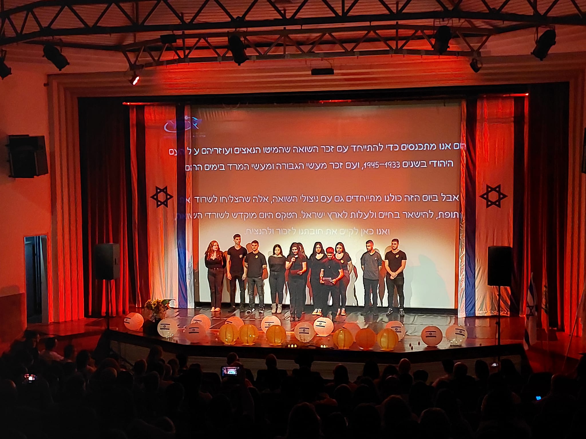 תלמידי השכבה יצאו למסע פנימי בו למדו וחקרו את נושא השואה. התלמידים שלבו בטקס סיפורים אישיים משפחתיים. בסיום הטקס עלו כל משתתפיו לבמה לשירת התקווה, נרגשים אוחזים בדגלי הלאום ומביעים את תחושת הגאווה וההשתייכות להיסטוריה המופלאה של עמנו.
