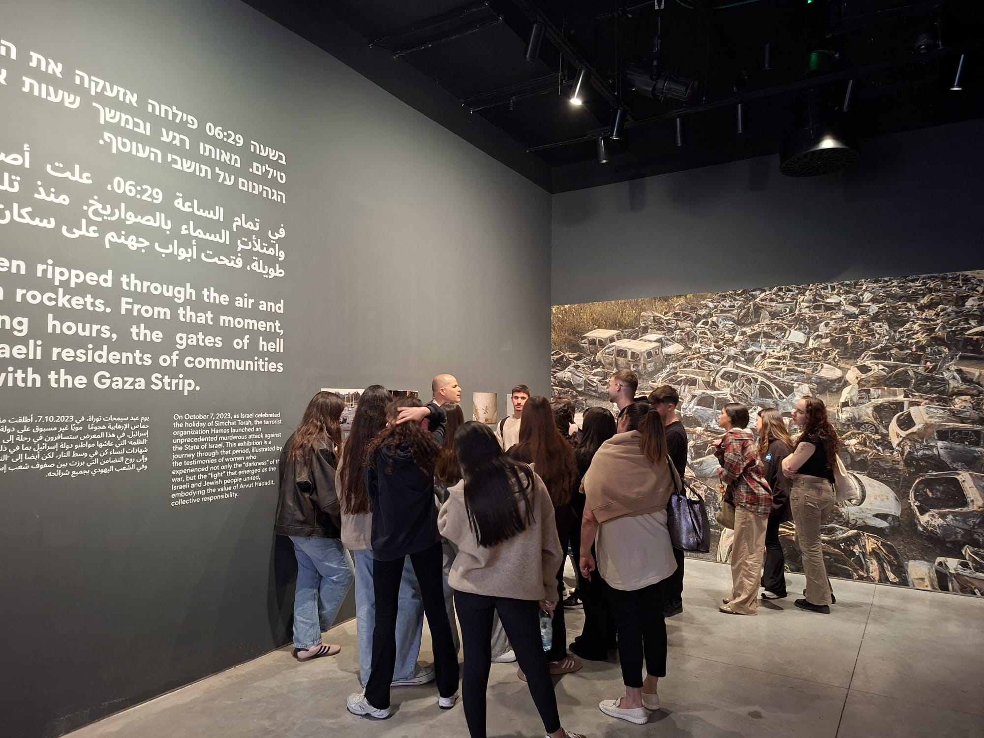 הביקור כלל גם סיור בתערוכה “6:29 – מחושך לאור”, המציגה את עדותן של 35 נשים ששרדו את אירועי השבעה באוקטובר, כחלק מתוכנית חווייתית שמחברת בין הסדנה ללמידה מעשית.