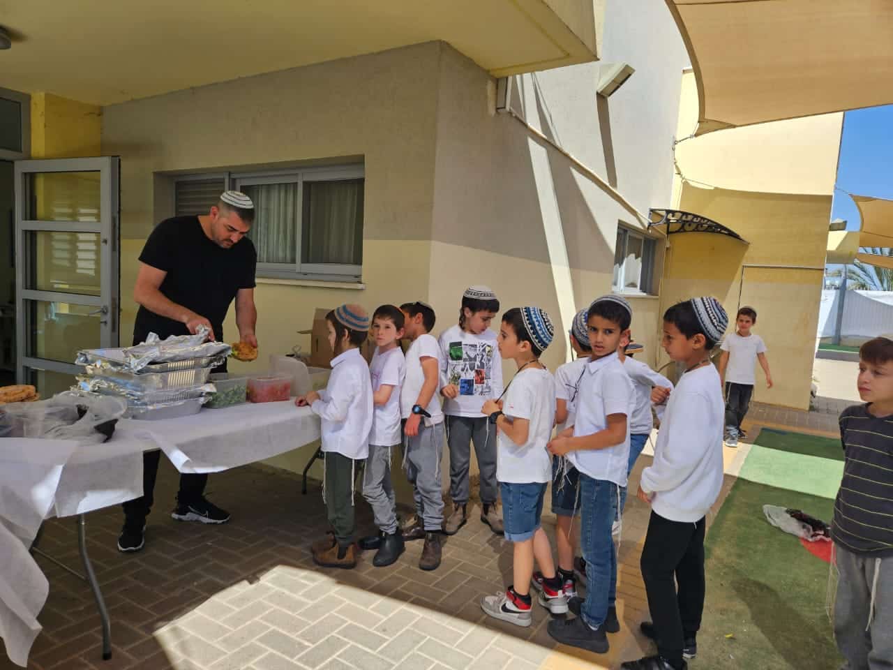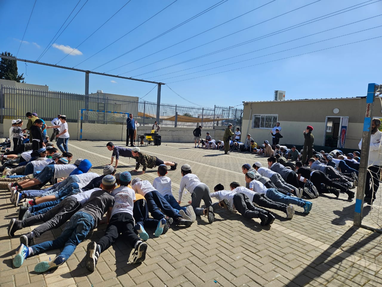 תלמוד התורה הפך ל"בסיס צבאי": בבוקר קיימו טקס צבאי הכולל את הנפת הדגל לצלילי ההמנון "התקווה", הצדעה ועמידת דום, קבלת המורים "האלופים" ו"הרמטכ"ל", מנהל תלמוד תורה הרב מיטלמן.