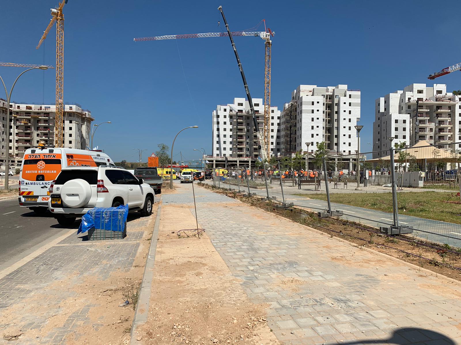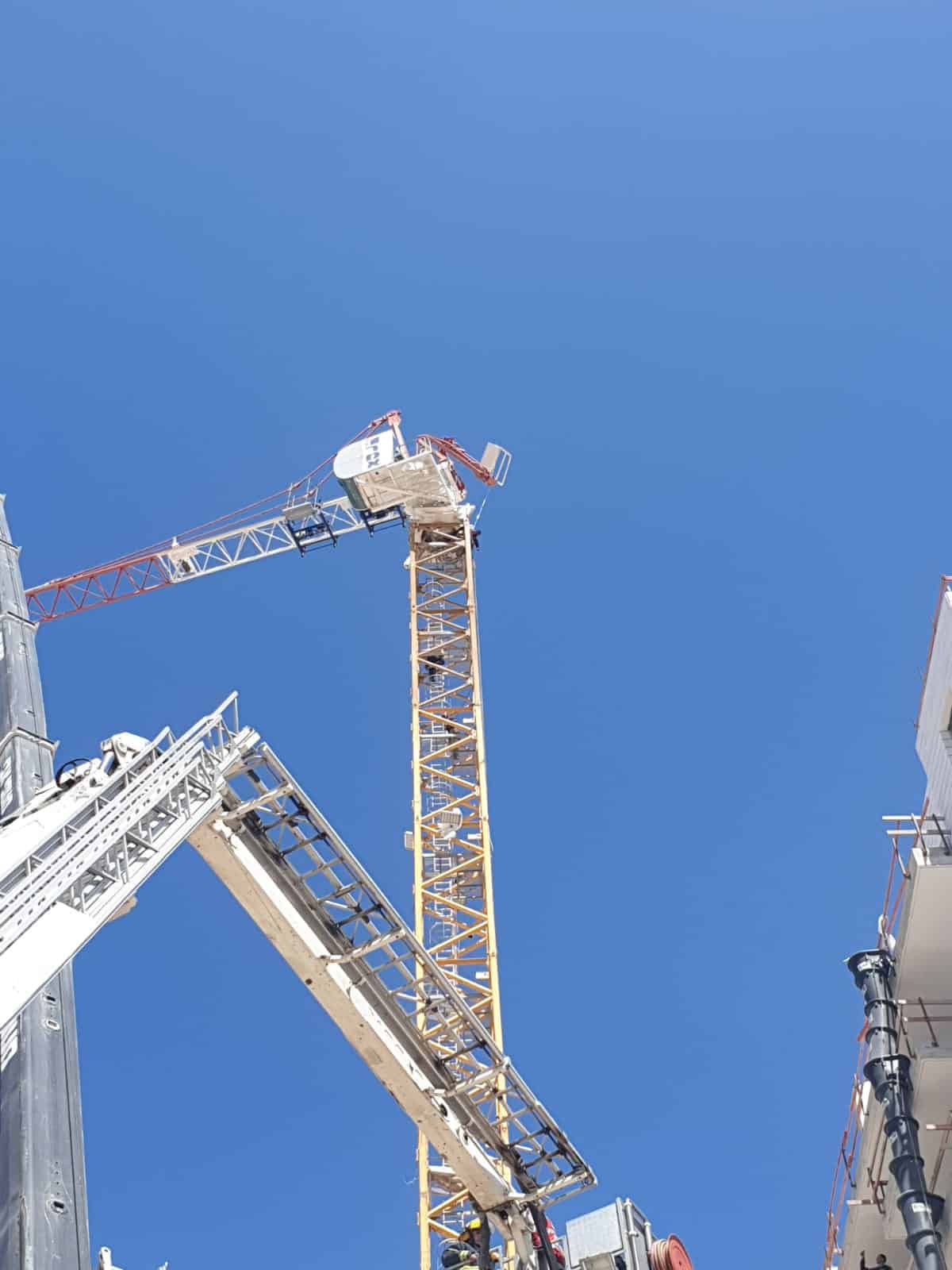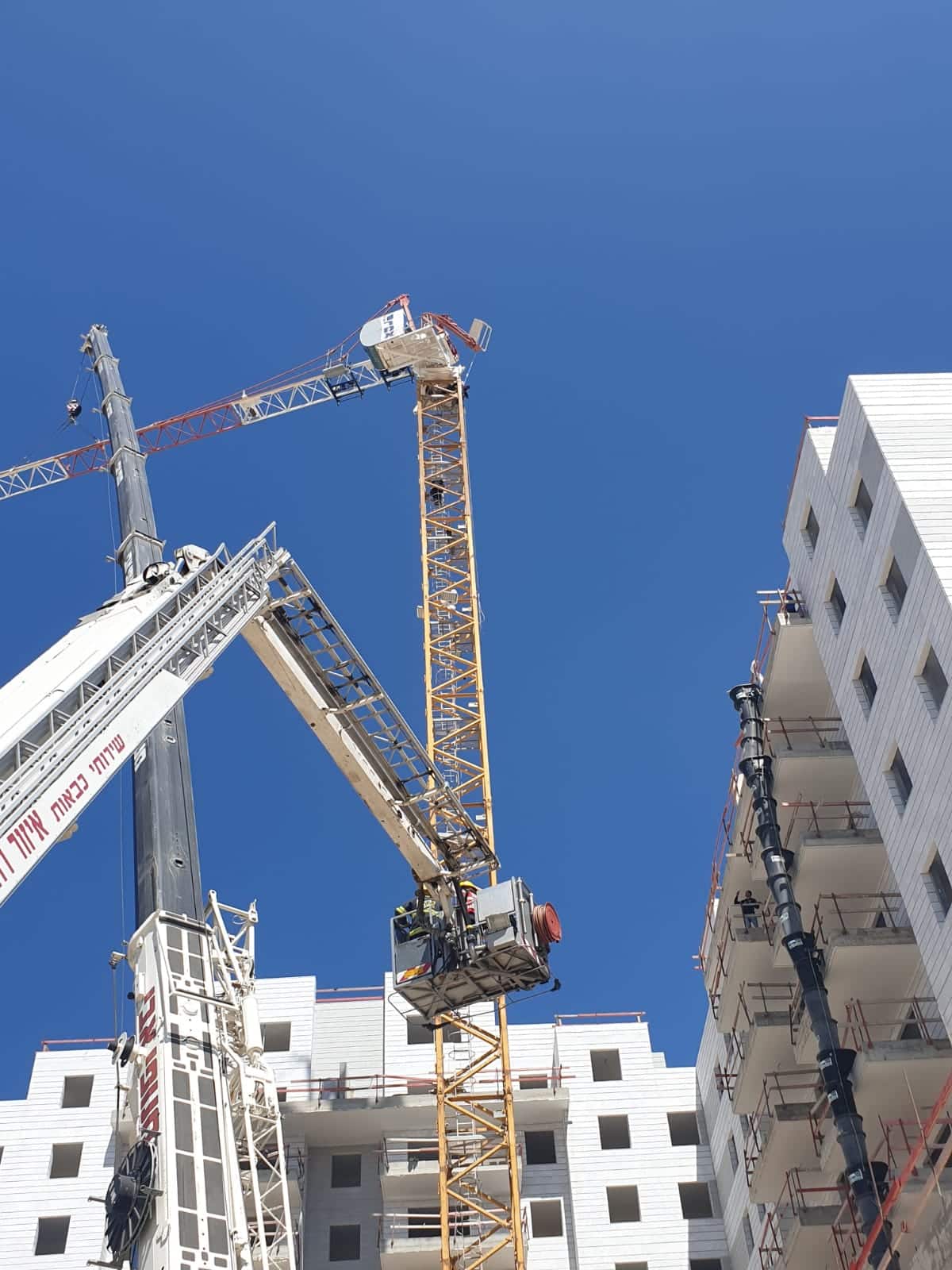 לוחמי היחידה לחילוצים מיוחדים בשיתוף פעולה עם לוחמי האש כולל שני מנופי גבהים פועלים במקום. בשלב זה עיקר המאמצים בחילוץ אדם שתלוי באוויר על העגורן בגובה 30 מטר. צוותי היחידה לחילוצים מיוחדים כרגע בטיפוס לייצב מצב ובמקביל לבצע פעולות חילוץ כמו כן למקום הוזעק מנוף 60 מטרים ממחוז דן.