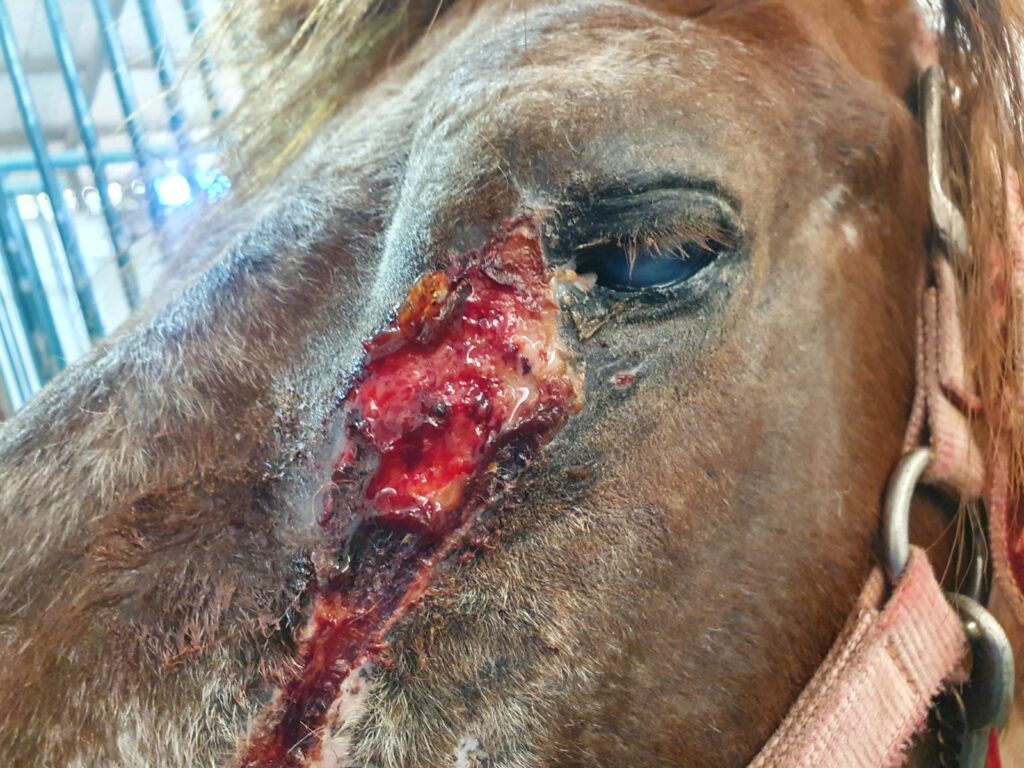 הכול התחיל בימים האחרונים כאשר בעקבות מידע שהגיע למשרד, הגיעו רופאת הסוסים של המשרד יחד עם מפקחי המשרד, שם מצאו שני סוסים במצב קשה, שכל אחד מהם סובל מפצעים ופגיעות שלא טופלו זמן רב. הסוס פוני שהיה במקום סבל ממחלה קשה בעיניו – שכמעט גרמה לעיוורון וכן מפגיעה קשה ברגלו השמאלית-הקדמית, והסוסה סבלה מכאבים עזים ברגליה, כתוצאה מפגיעה קשה במפרקים, שגרמו לעיוות הרגליים ולקשיי הליכה. גורמי המקצוע מטעם משרד החקלאות שהגיעו למקום העניקו טיפול רפואי ראשוני שהציל את הסוס פוני מעיוורון, ומיד לאחר מכן, החליטו לפנות את הסוסים בהקדם האפשרי לבית החולים הווטרינרי.