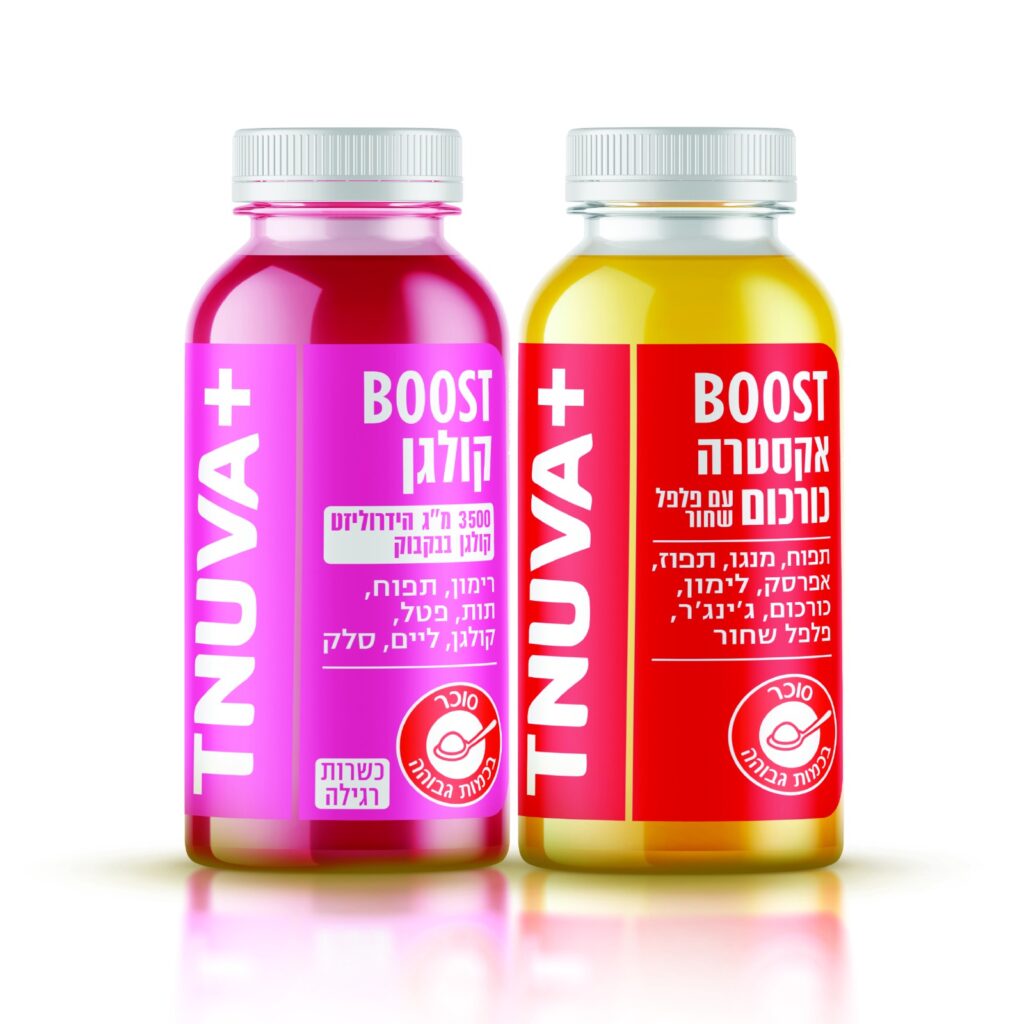 תנובה, מרחיבה את סדרת השוטים הפונקציונליים תחת המותג TNUVA+ ומשיקה 2 שוטים נוספים: בוסט קולגן ובוסט אקסטרה כורכום עם פלפל שחור (בפורמט שוט של 100 מ"ל כל אחד). הבוסטים החדשים מבוססים על מיצי פרי וירק, כאשר כל משקה מכיל רכיב ייחודי, והמקור לסוכרים הוא ברכיבים הצמחיים בלבד.