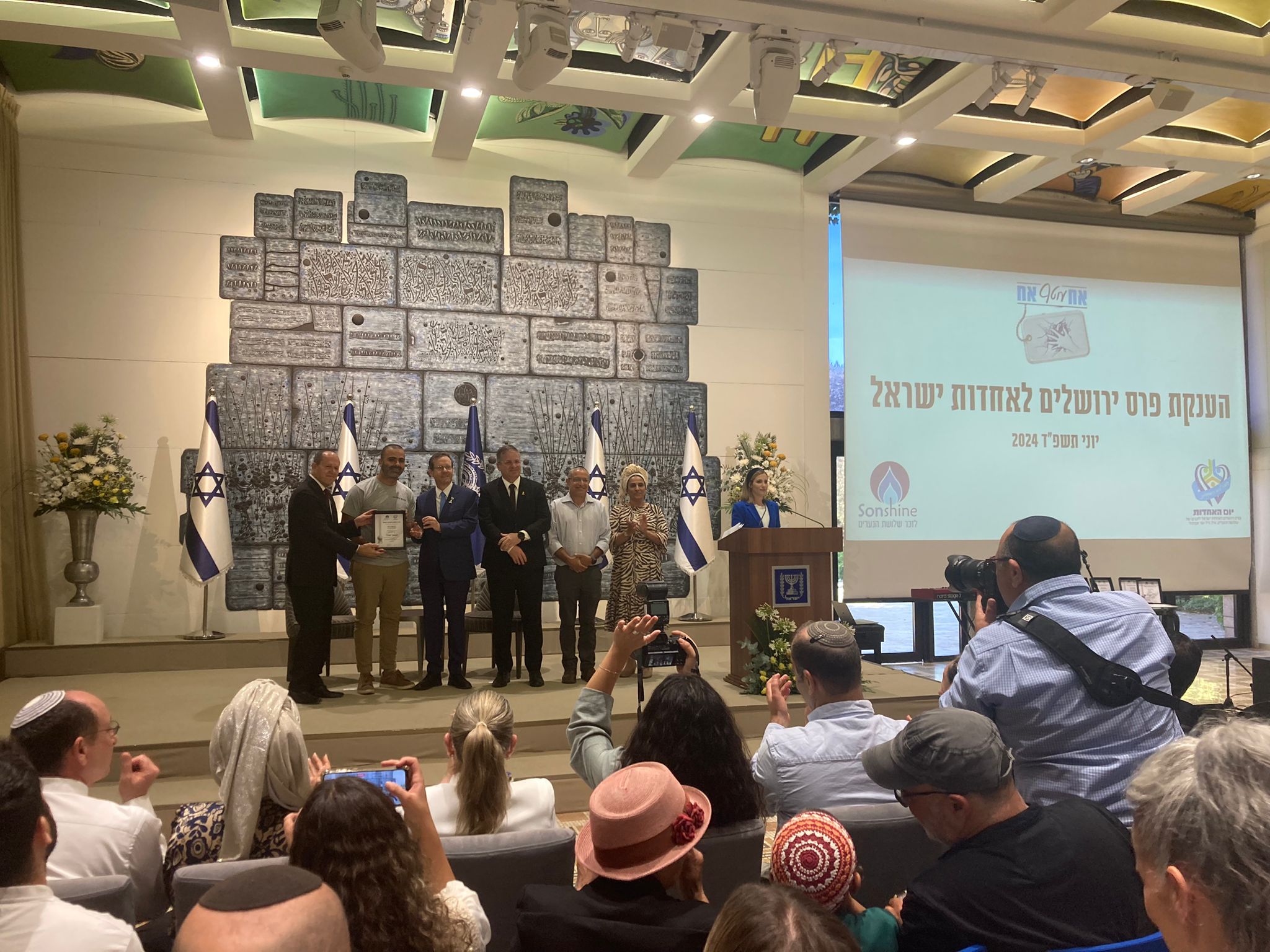 מעמד קבלת פרס אחדות ירושלים אחריי – צילום יחצ אחריי