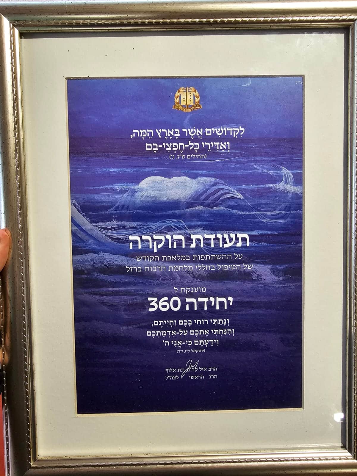 מתנדבי יחידה 360 – מערך הסיוע הלאומי קיבלו תעודת הוקרה מהרב הראשי לצה"ל על הטיפול בחללי מלחמת חרבות ברזל