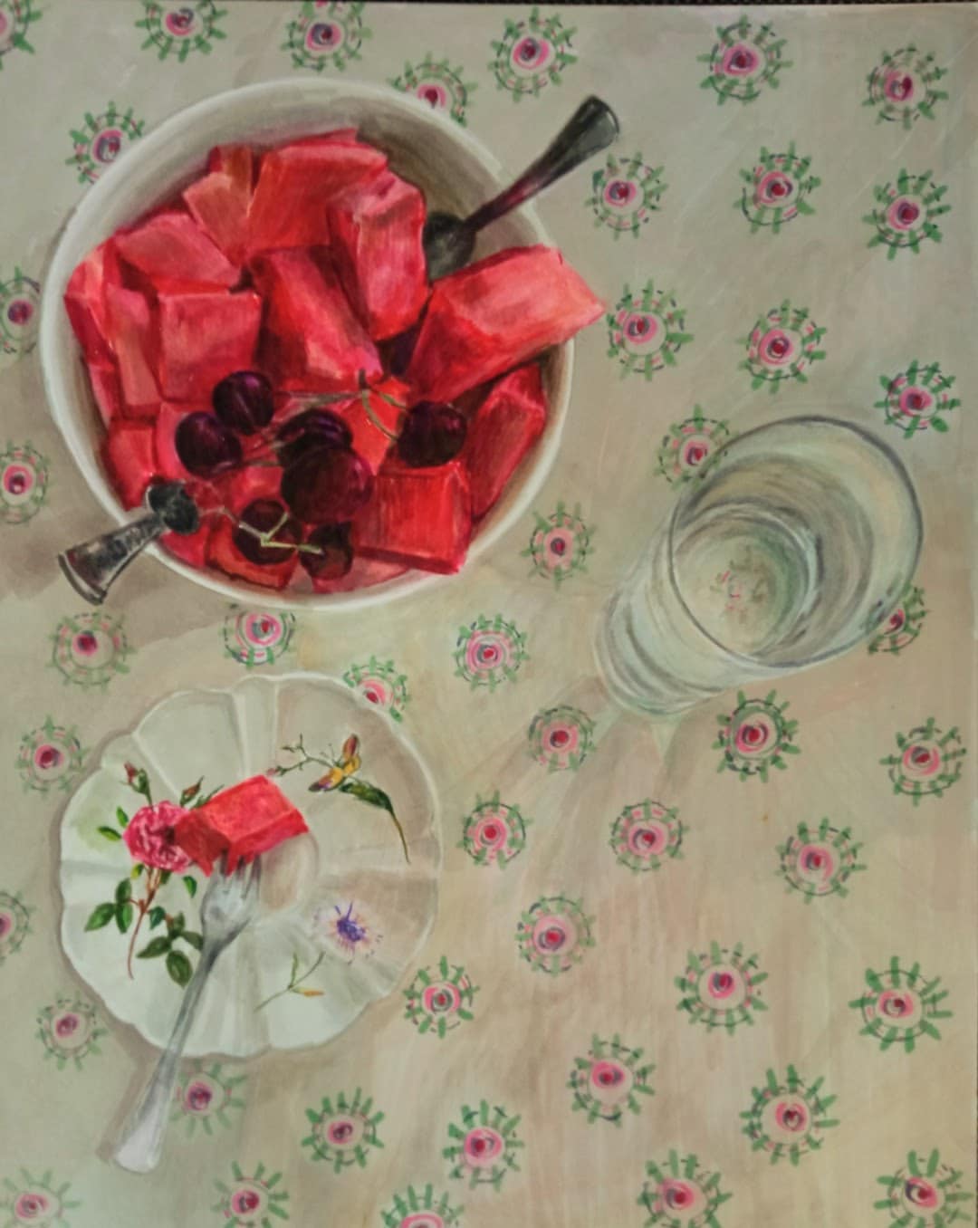 התערוכה הייתה אמורה להיפתח באמצע חודש נובמבר, אבל בשבעה באוקטובר חרב עלינו עולמנו וביתנו והזמן קפאו מלכת. הבית, שהיה גם מבצר וגם מרחב מפגש ואירוח, עבר טלטלה עזה.