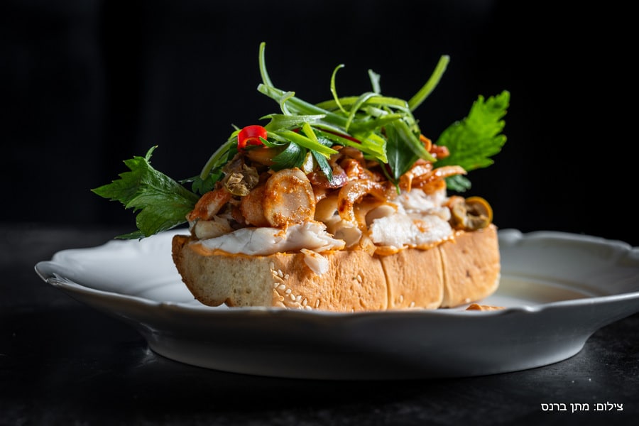 טטאקי סינטה צרובה – קרם בצל מקורמל, ויניגרט עשבים , פופקו כבד אווז – קרם תירס, סירופ וניל, קראמבל נבטי ריחן, שיפוד שקדי עגל על הגריל – ראגו פטריות, ניוקי, קרם ארטישוק ירושלמי, סלט ערמונים חסה לאליק, אנדיב סגול וירוק, ערמונים מקורמלים, ויניגרט נענע לימוני, פקאן סיני וטאצ' של פרי עונתי. סשימי קוסמוי– סלמון , קולרבי, בצל ירוק וסגול, סלרי, ויניגרט צ'ילי ובייבי מלפפונים. בקלוואה עגל– טחינה, סילאן, קרם קוקוס, פיסטוקים , עלי שומר ופרחי בזיליקום. קפלטי סלק – ראגו פיטריות, זרעי עגבנייה , שמן ריחן וקראמבל פירורים. ברוסקטה דגים – סלט בישבש ובצל בתיבול כמון ואריסה, פילה לברק מפורק, איולי פלפל צומה ועלי שום, פילה לברק- קרם שורשים, קונפי שום, זיתי טאסוס, שמן זית, בזיליקום תימני, אורגנו ופרחי זעתר. סוכריות בטטה- קרם קארי צהוב, חלב קוקוס, שעועית עדינה ואפונה סינית. אנטרקוט מיושן- נתח מובחר צלוי בגריל פחמים, טוגנים צרפתיים בציר פלפלת וקונפי שום -300 גרם. לחם בשר- מדליוני פילה בקר קרעים של לחם על מחבת לוהטת לצד עגבניות מגי, פלפל חריף, בצל ירוק.