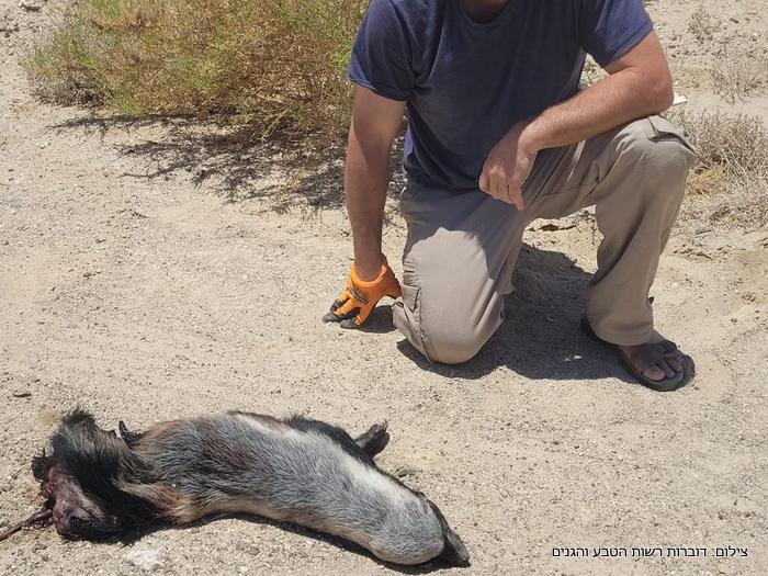 תצפית נדירה ועצובה של גירית דבש שרצתה לשתות מים ונדרסה בכביש הערבה