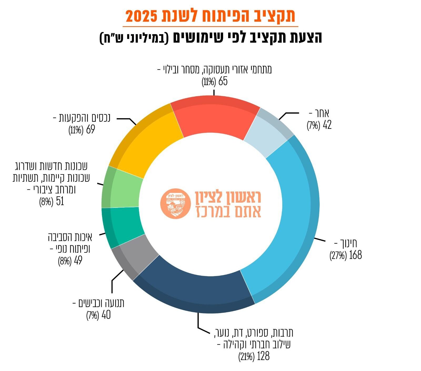 תקציב הפיתוח לשנת 2025 יעמוד כ-612 מיליון שקל. בנוסף, סך התקציב לתוכנית החומש לשנים 2029-2025 יעמוד על כ-4.903 מיליארד שקל, זאת לעומת 3.530 מיליארד שקל לתוכנית החומש בשנים 2025-2021.