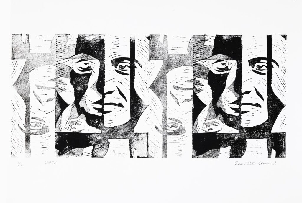 התערוכה ״פנים אל מול פנים״ מציגה את יצירותיה של האמנית אנט אמיר וחושפת חיבור מיוחד בין שתי מדיות: קרמיקה והדפס אמנותי ועוסקת בפנים ובנשיות. אמיר הושפעה מהאמנית ג'ודי שיקגו הפמיניסטית, הידועה בעיקר בעקבות עבודות הציור והמיצב שלה על לידה ויצירת דימויים הבוחנים את תפקיד הנשים בהיסטוריה ובתרבות.