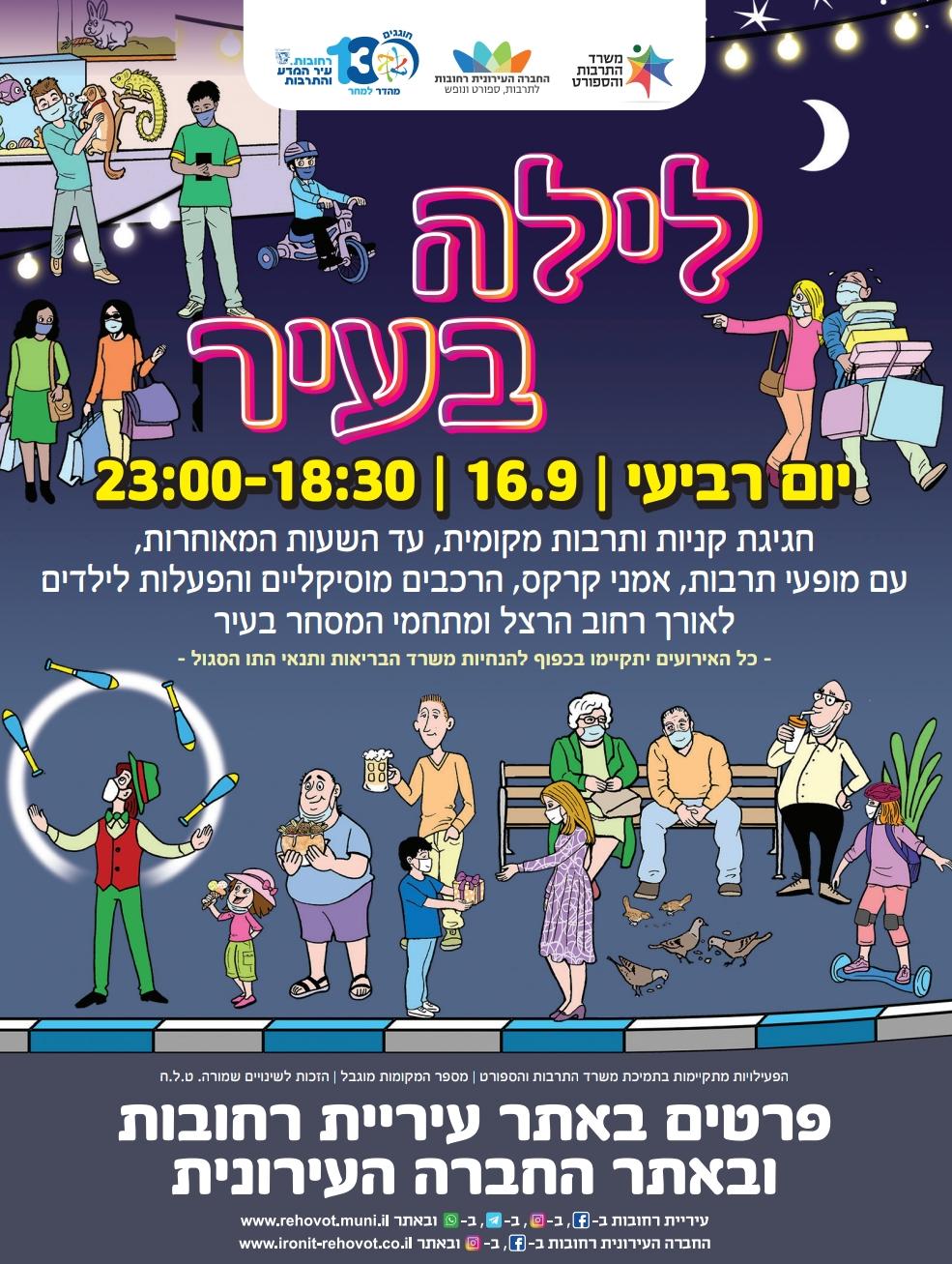 עיריית רחובות, באמצעות המחלקה לרישוי עסקים והחברה העירונית, מקיימות חגיגה קצת שונה לקראת ראש השנה- חגיגת קניות ותרבות מקומית בשם "לילה בעיר – Late Night" שתחל בשעות הערב ותימשך עד השעות המאוחרות.