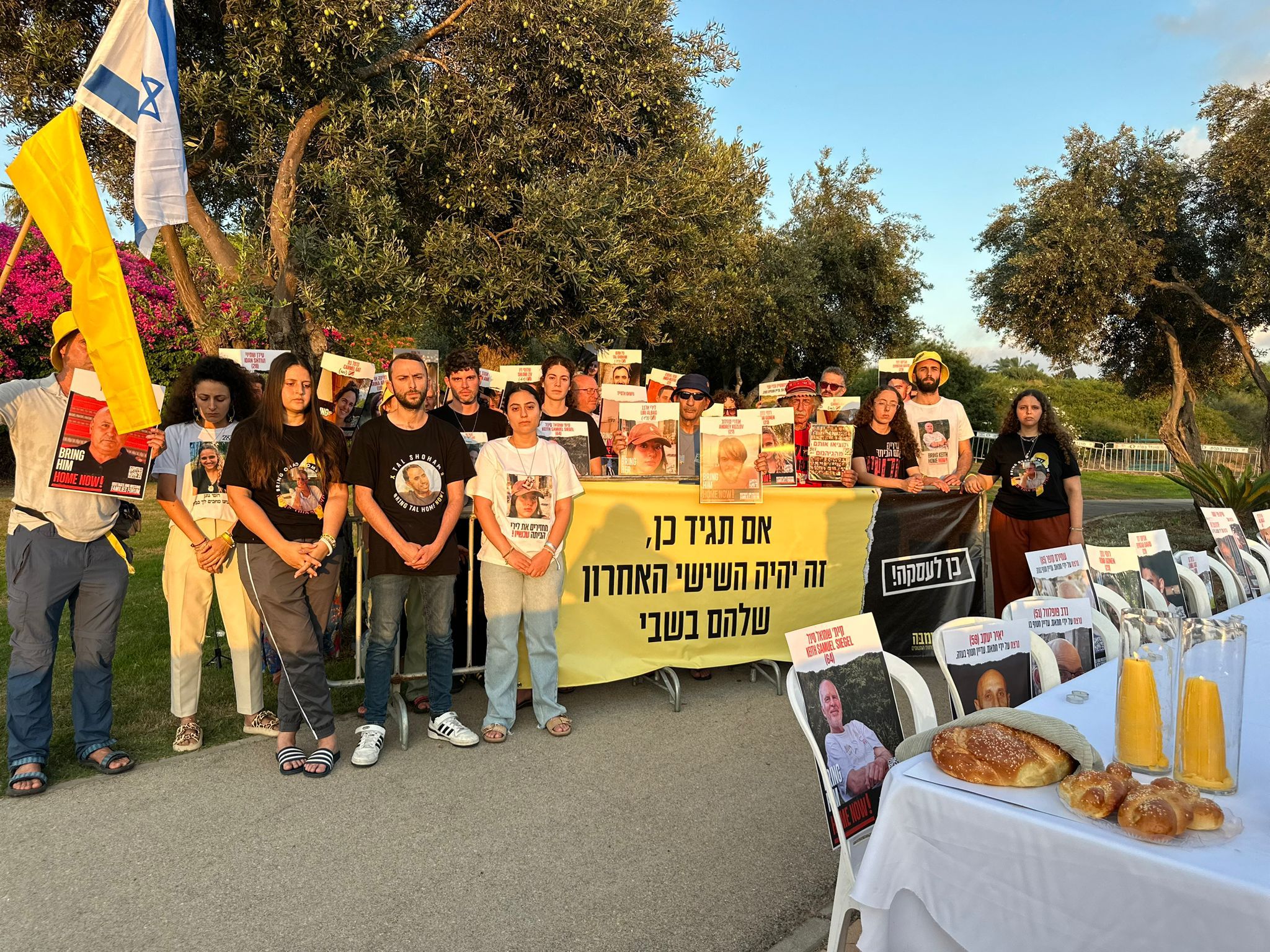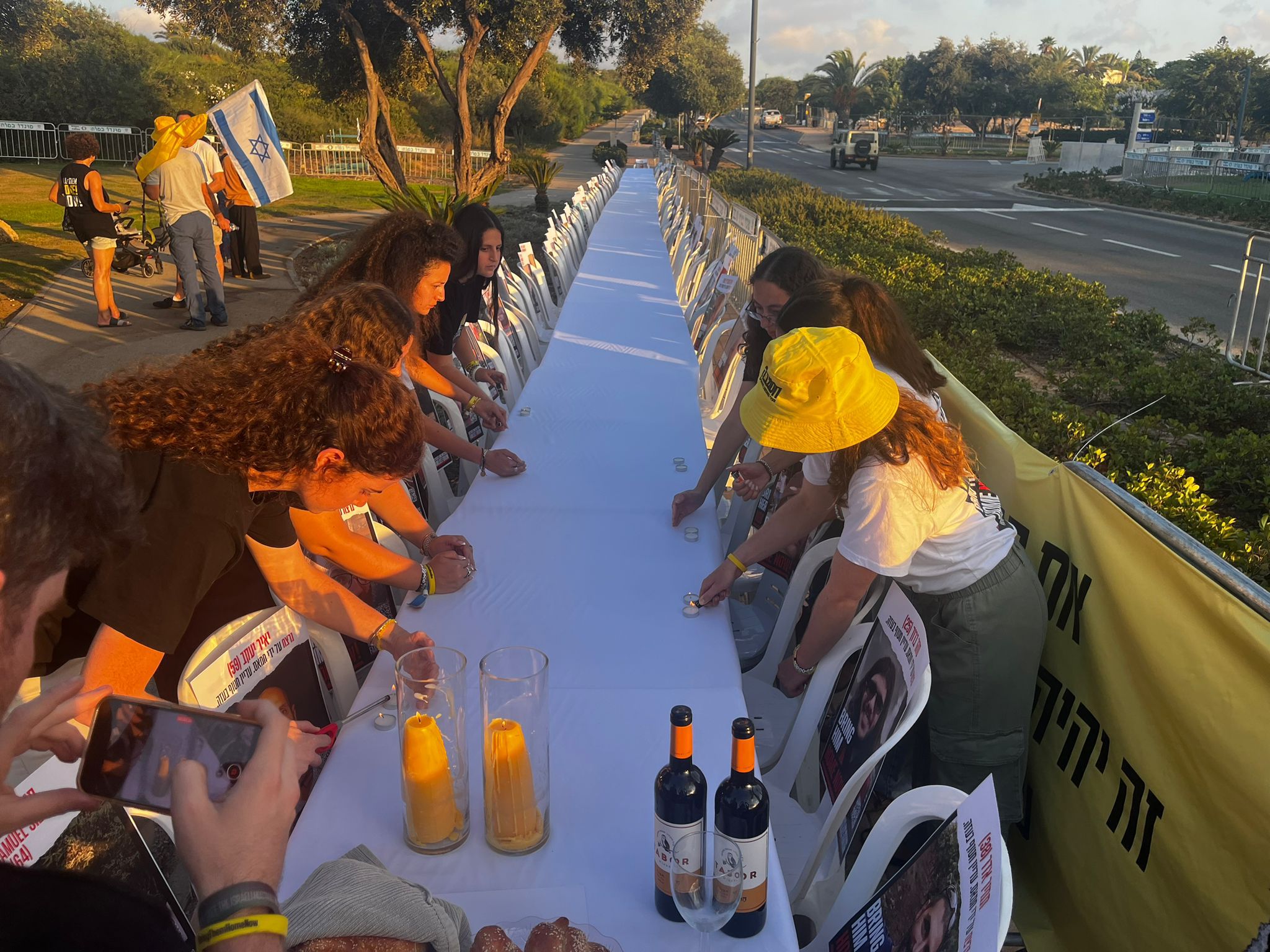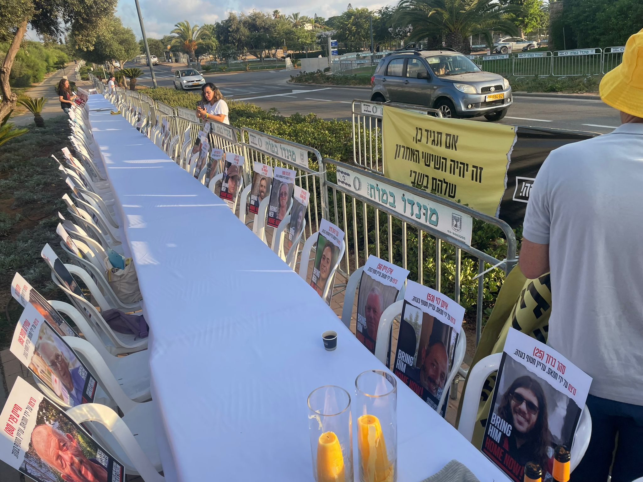 ״רגע לפני קידוש, אנחנו נמצאים מחוץ לבית רה״מ בקיסריה עם שולחן שיש בו 120 מקומות שמחכים לאהובים שלנו שיחזרו.