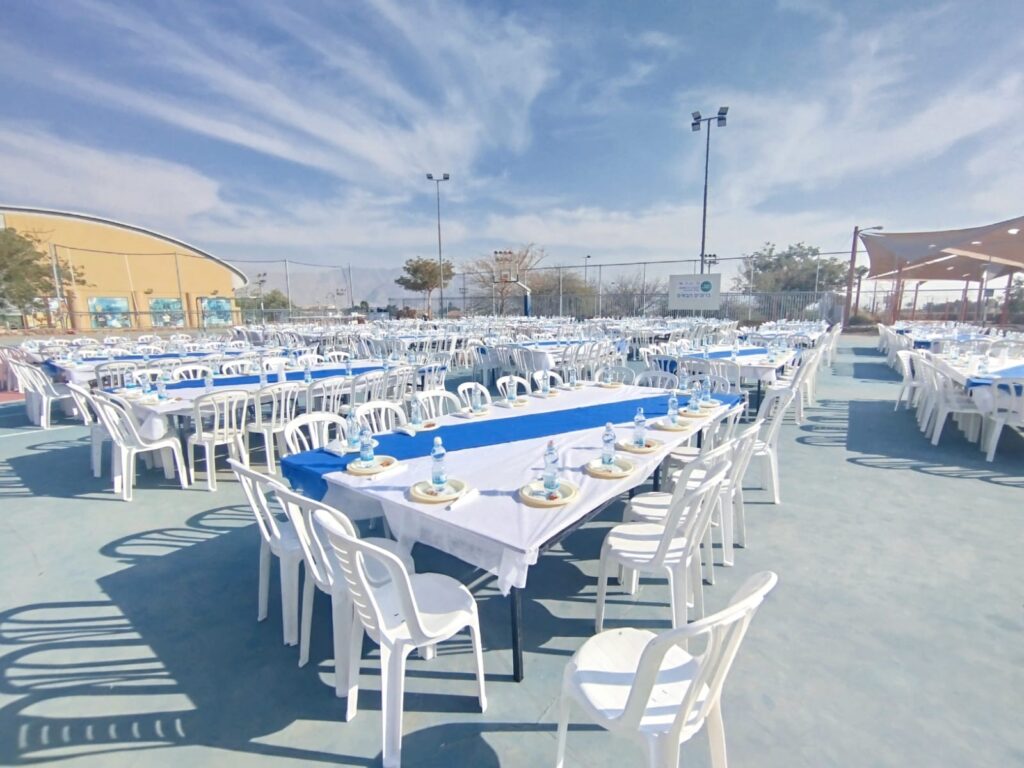 שיאו של השבוע הגיע בערב שבת (7.11), פרשת וירא, כאשר התקיימו ארבע סעודות שבת קהילתיות בבתי הספר "ים סוף", "עציון גבר", תיכון "בגין" ותיכון "רבין". כ־1,500 תושבים מכל שכבות הקהילה – משפחות צעירות, חיילים, מורים, ותיקים ותלמידים – התאחדו סביב שולחנות לבנים לחגיגה של שירה, קידוש ותפילה, וחוו יחד חוויית קהילה מרגשת ומאחדת.