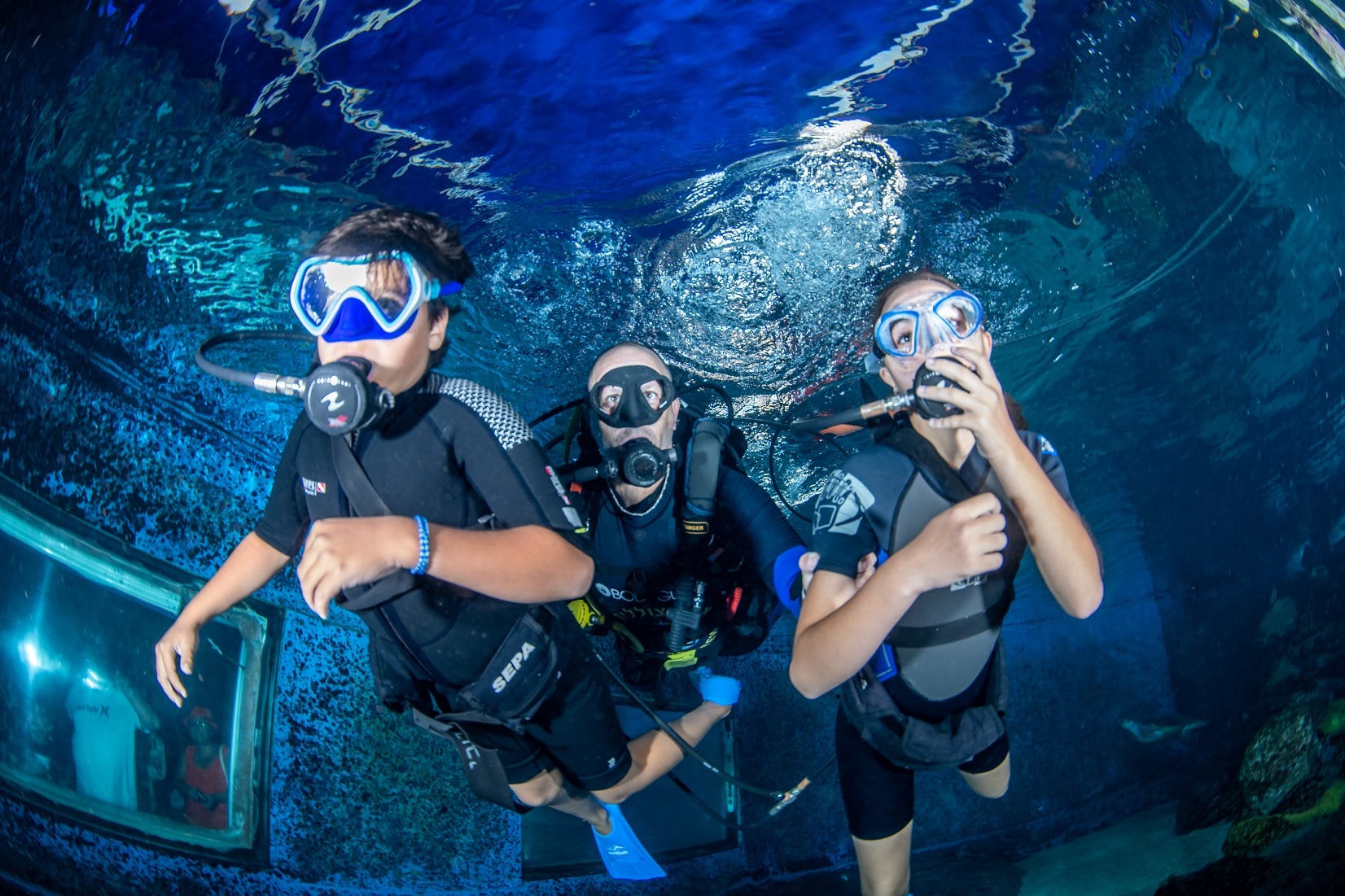 מגיל 12 ומעלה מחיר: 599 ₪ הכוללים את הכניסה לפארק המצפה התת ימי, צלילה עם כרישים וכניסה לאקווה דום (סרט תלת מימד ייחודי העוקב אחר לוויתן גדול הסנפיר) דייב אין למערת חתולי הים