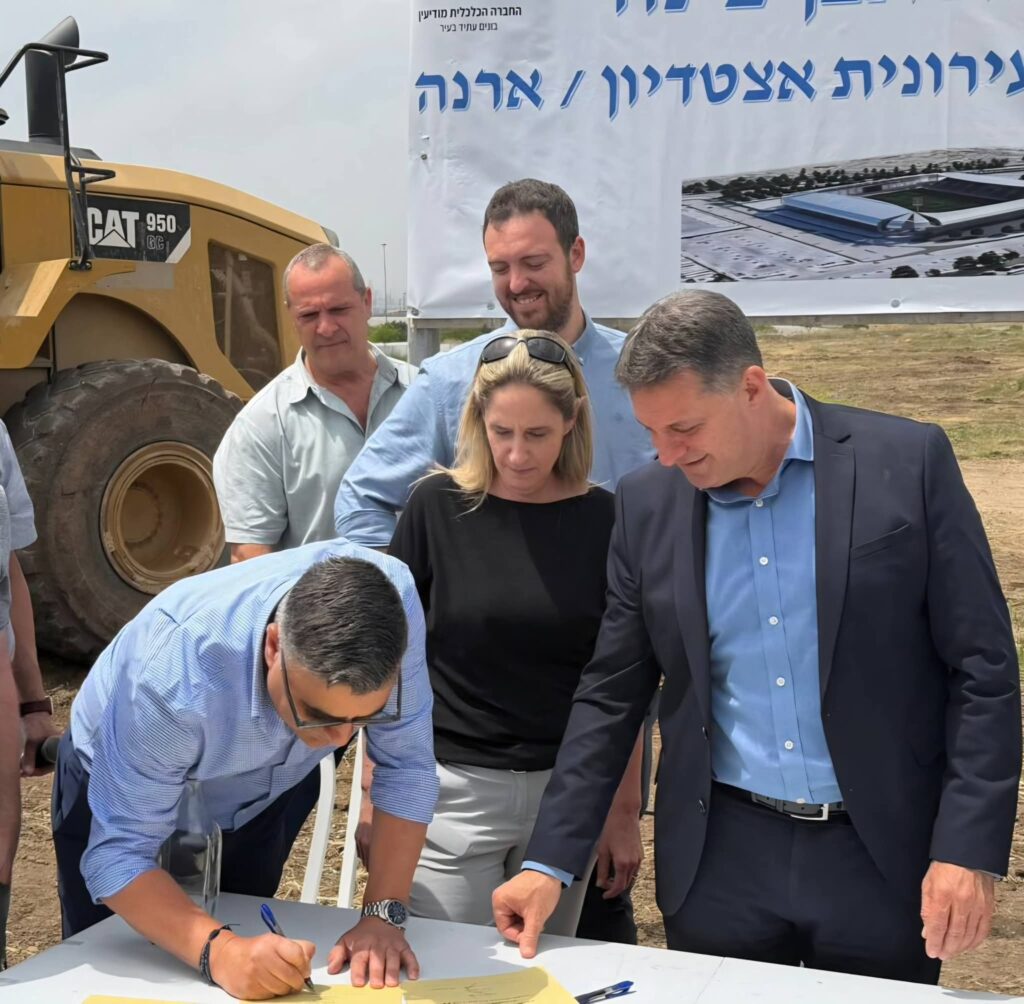 ביום ראשון 26.4, התקיים טקס הנחת אבן פינה לפרויקט הענק של הקמת אצטדיון עירוני מתקדם לכדורגל. הטקס התקיים בהשתתפות ראש העיר חיים ביבס הסגנים, אור גרינפלד, עמיעד טאוב, שלמה פסי ואלעד שמעונוביץ, המשמש גם כמחזיק תיק הספורט, חברי מועצת העיר שמעון גואטה, גלעד ביהרי, איתי בר אלמוג ורן שגב, נציגי הנהלת עירוני מודיעין, מאמן עירוני מודיעין ארז בנודיס ומייסד המועדון, דוד בן שימול. נציגי העירייה והחברה הכלכלית לפיתוח מודיעין.