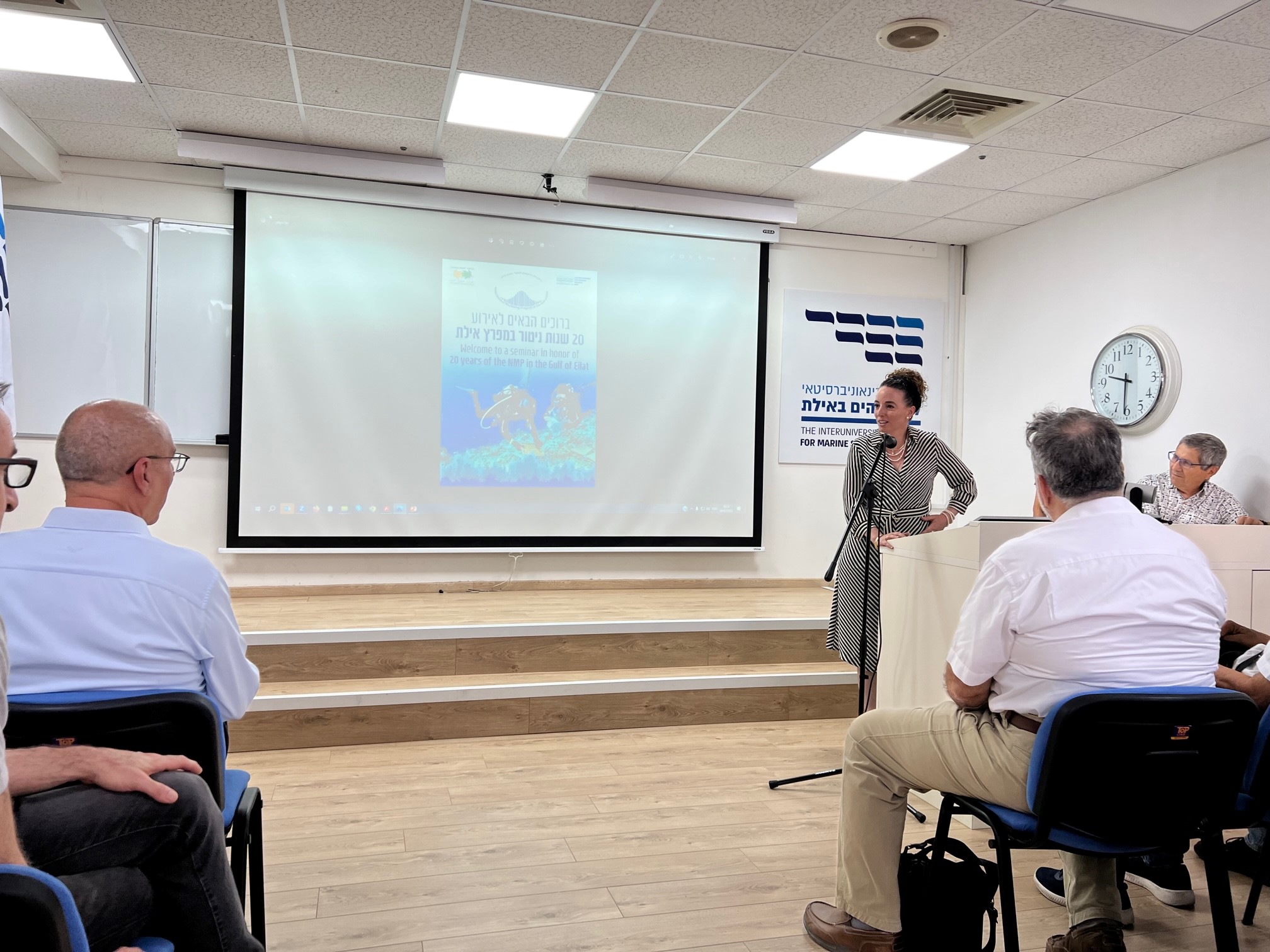 בכנס שהתקיים במעמד השרה להגנת הסביבה – עידית סילמן, הציג ד"ר דרור צוראל, מרכז מדעי לניטור ומחקר ימי במשרד להגנת הסביבה, את השפעת הניטור על מדיניות המשרד בניהול הסביבה הימית במפרץ. עוד לקחו חלק בכנס: ראש עיריית אילת- אלי לנקרי, המדענית הראשית של המשרד להגנת הסביבה – פרופ' נגה קרונפלד שור, שהיא גם יו"רית הוועד המנהל של תוכנית הניטור, פרופ' אמציה גנין – המנהל המדעי של הניטור הלאומי באילת וצוות הניטור. התוכנית הלאומית לניטור מצב הסביבה הימית במפרץ אילת, שהחלה בשנת 2003בעקבות המאבק להוצאת כלובי הדגים,מבוצעת על ידי צוות מדענים ייעודי במכון הבין-אוניברסיטאי באילת, במימון הקרן למניעת זיהום ים של המשרד להגנת הסביבה.התוכנית כוללת מדידות של פרמטרים ביולוגיים, כימיים ופיזיקליים בים, ובניגוד למחקר רגיל המתבצע בתקופת זמן מוגבלת, הניטור הלאומי נפרס על פני תקופת זמן ממושכת המאפשרת איסוף מידע, נתונים וניתוח מגמות לאורך זמן. במשרד להגנת הסביבה מציינים, כי הניטור הלאומי הוא כלי חשוב לקבלת החלטות, ונותן מענה מחקרי לאתגרים החדשים שעמם מתמודד המפרץ כמו התחממות מי הים, אובדן חלק מכיסוי האלמוגים, ירידה במספר הקיפודים, הזרמת שפכים, קביעת ערך סף לחנקן המוזרם לים ועוד. הניטור כולל גם מרכיב של שיתוף פעולה עם המכון הימי הירדני, מתוך הבנה שלחי הימי אין גבולות.עוד מציינים במשרד, כי ממצאי הניטור מסייעים למשרד להגנת הסביבה ולרשות הטבע והגנים לא רק בניהול השוטף, אלא גם בניהול אירועים חריגים. בקיץ 2017 סייע הניטור בזיהוי הסיבה לתמותת דגי השונית,  כשקבע שמדובר בהתפרצות מחלה כתוצאה מהתחממות מהירה של מי הים, תוך מתן מענה מהיר שקטע את שרשרת ההדבקה. בנוסף, אפשר הניטור להעריך את מידת הנזק שנגרם לשונית בעקבות סערת החורף החריגה שפקדה את חופי העיר בשנת 2020.