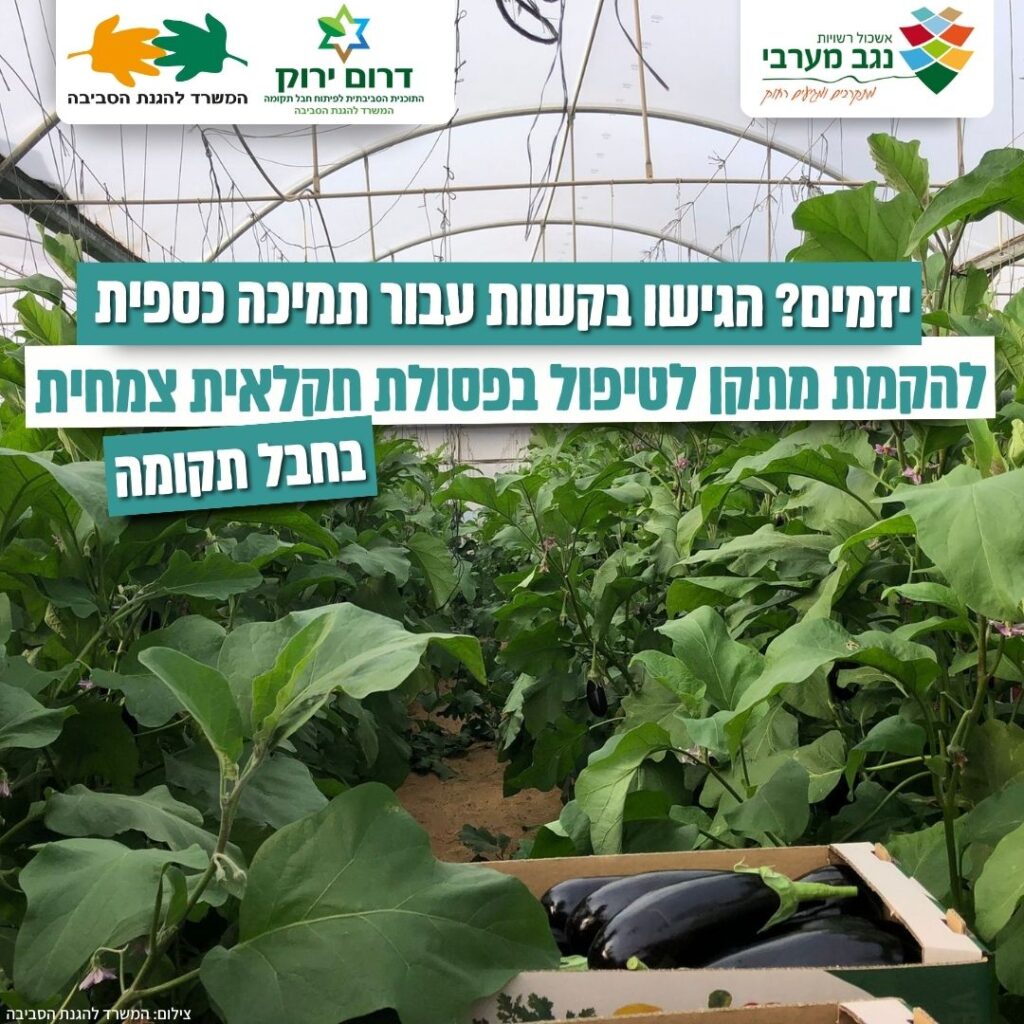 המשרד להגנת הסביבה ואשכול נגב מערבי מזמינים יזמים להגיש בקשות עבור תמיכה כספית להקמת מתקן לטיפול בפסולת חקלאית צמחית בחבל תקומה; המתקן, במימון המשרד להגנת הסביבה, יקום בשטח המועצות האזוריות אשכול ושדות נגב ויפיק אנרגיה מהפסולת החקלאית הנאספת מחקלאים ביישובי חבל תקומה.