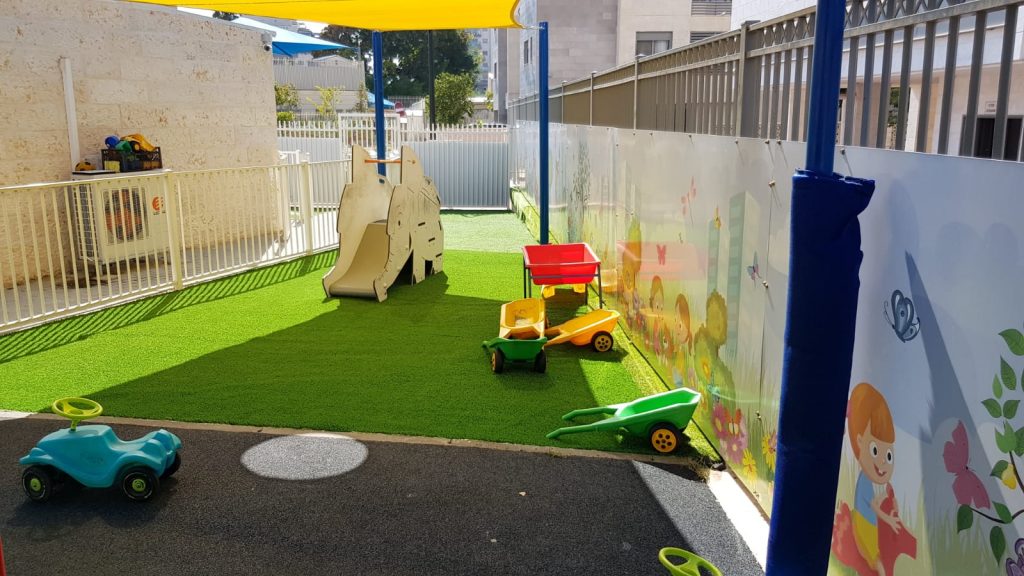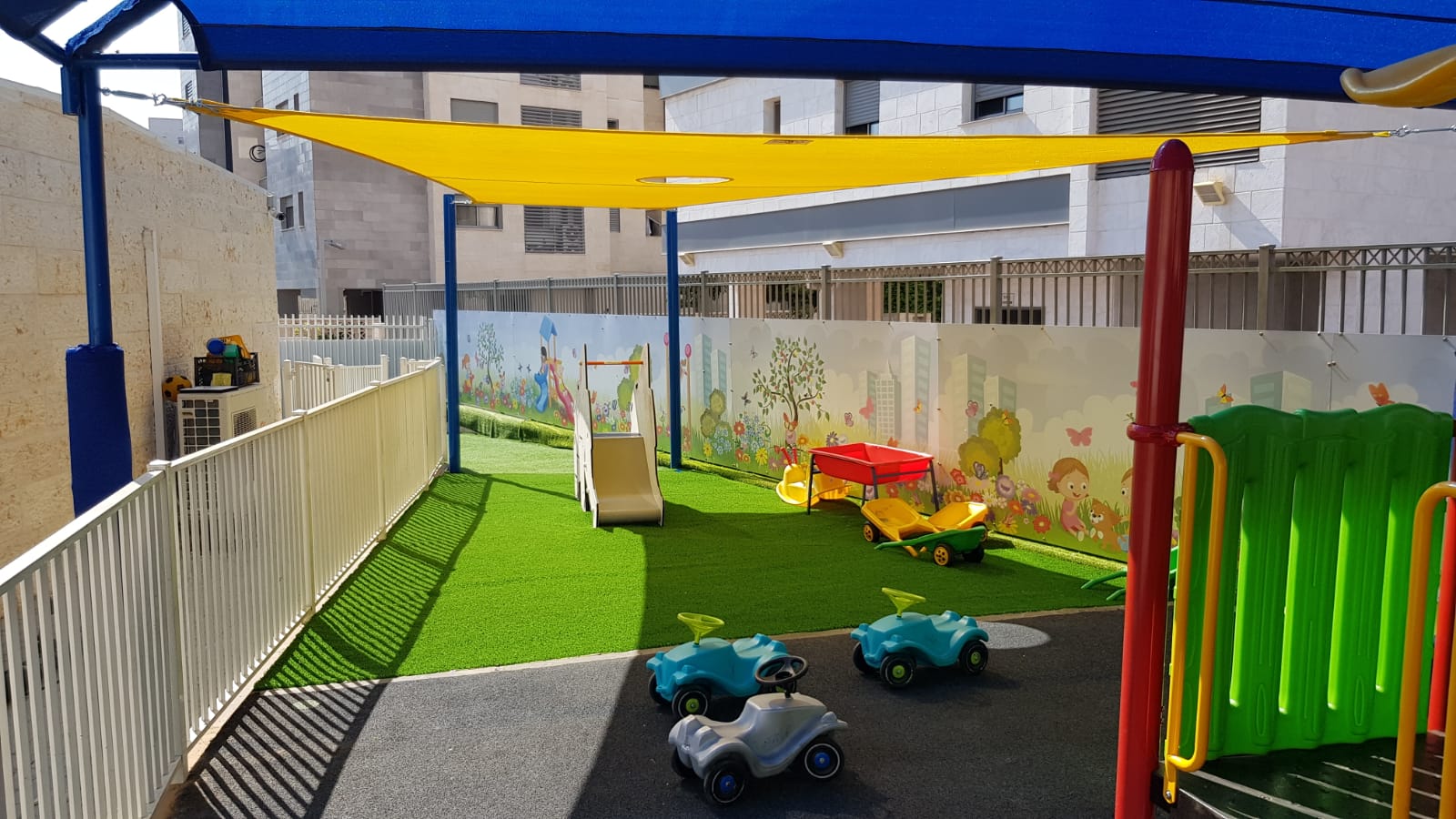 עבודות השיפוץ כללו התקנת דשא סינטטי וריצוף גומי מותאם בכל שטח החצר, מתקני ילדים חדישים ומותאמי גיל ואף הצללה של כל מתחם המשחקים.